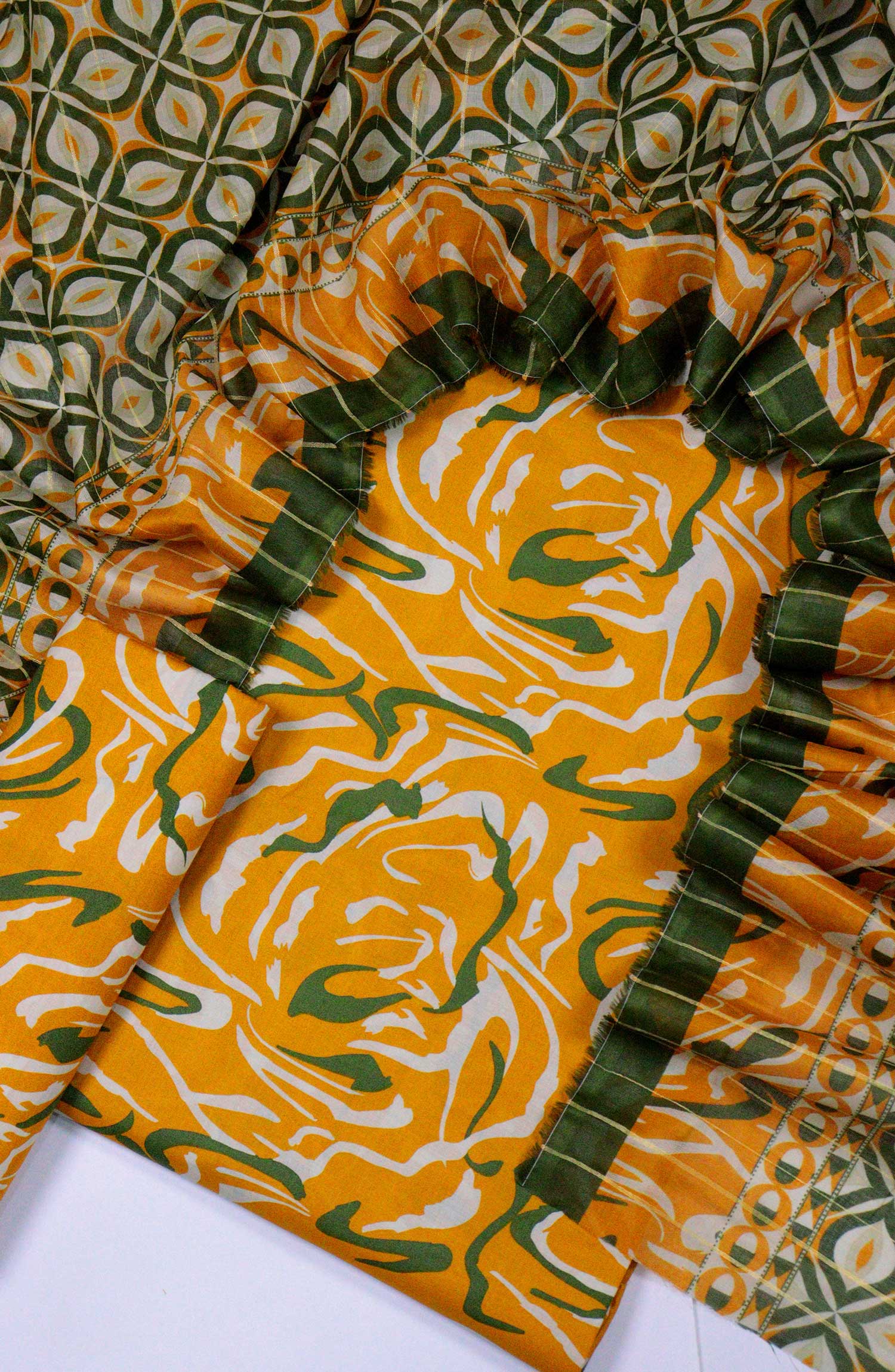 Bin Saeed Unstitch Printed Lawn Collection has been styled in the image for photography and illustrative purposes.