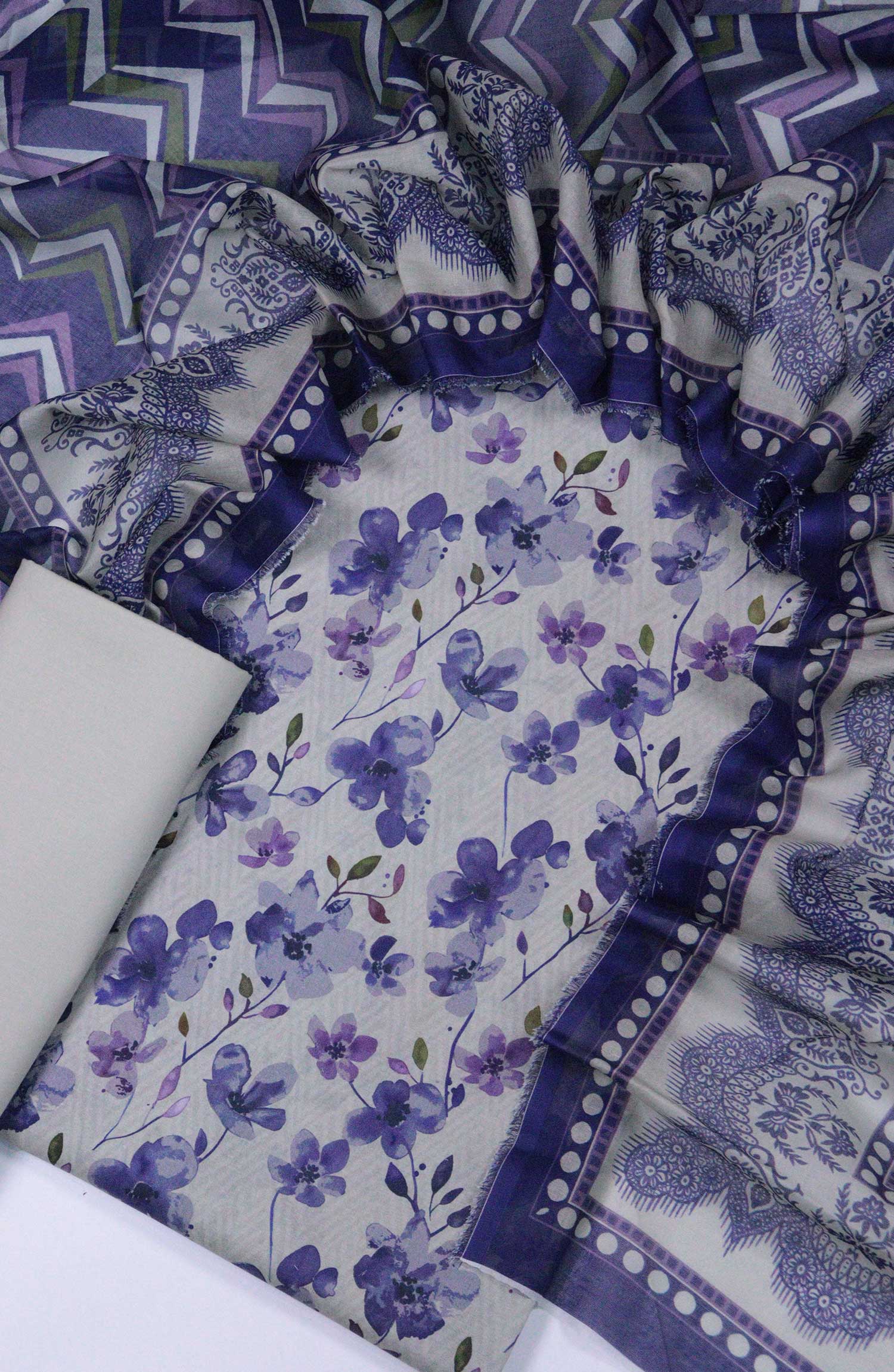 Bin Saeed Unstitch Printed Lawn Collection has been styled in the image for photography and illustrative purposes.