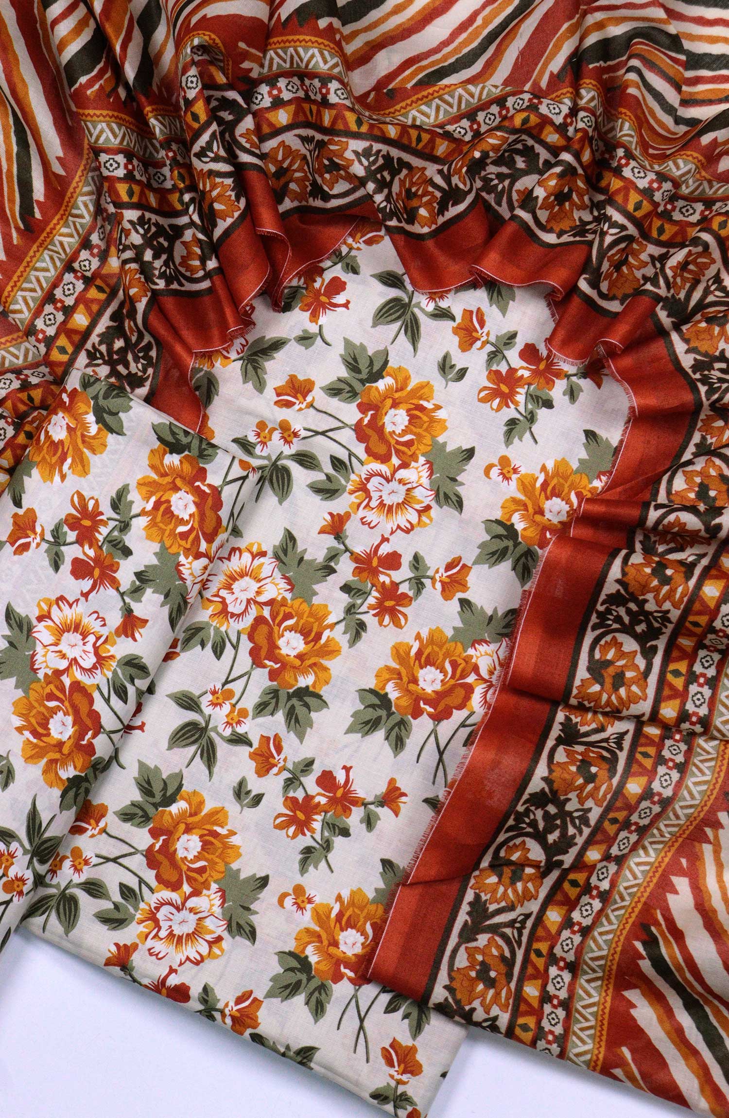 Home Bin Saeed Printed Lawn Unstitched 3 Piece - D-45 - BS25L - White - Summer Collection