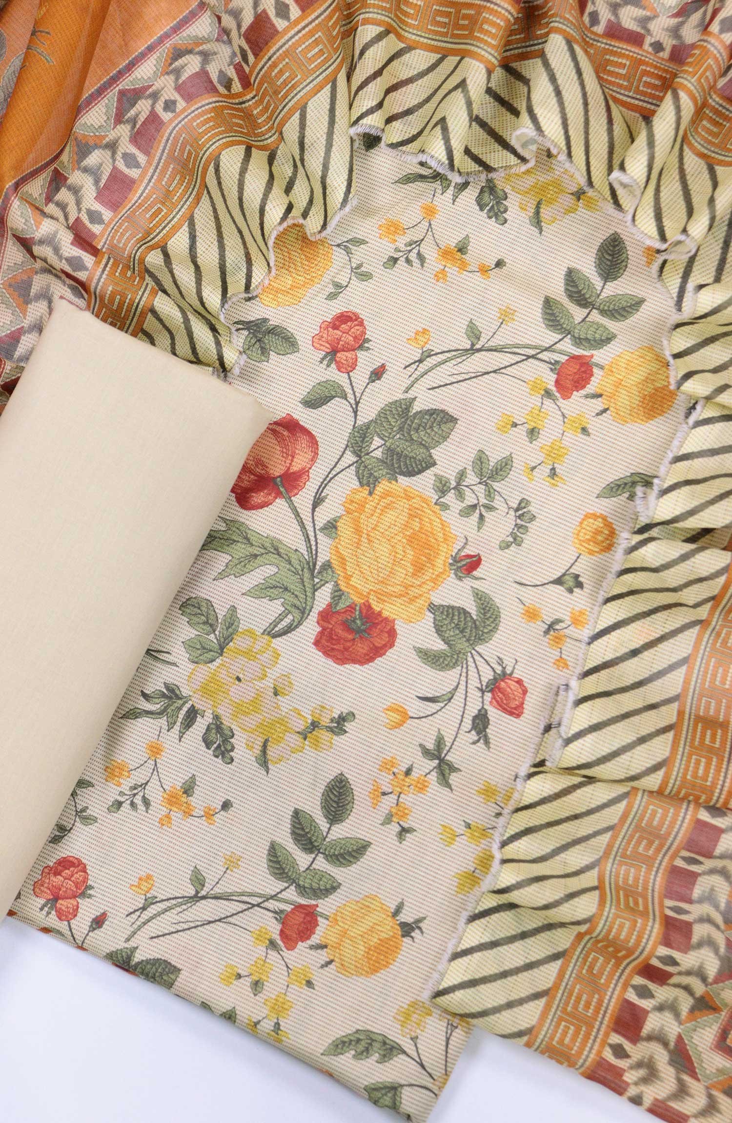 Shanzey Printed Cambric Stitched 3 Piece Suit - SHK-4901 - SHZ25CAM - Off White - Girls Winter Collection