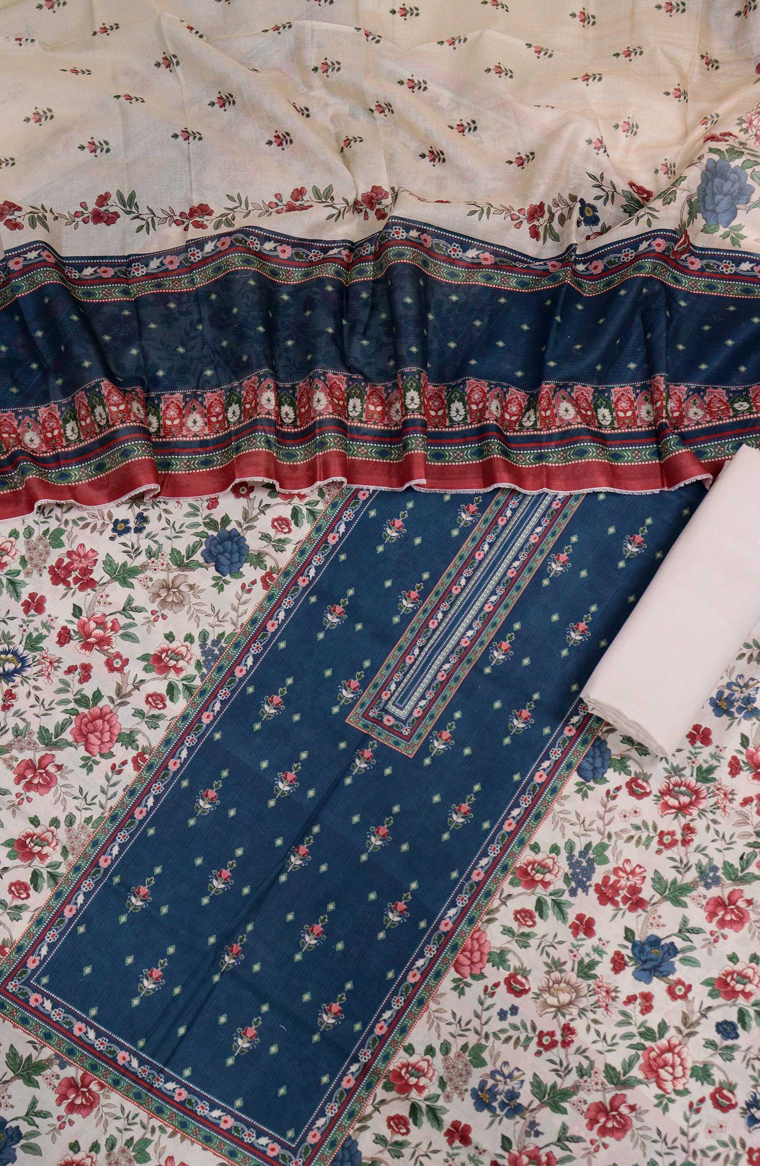 Home Bin Saeed Printed Lawn Unstitched 3 Piece Suit - D-81 - BS25L - Blue - Summer Collection