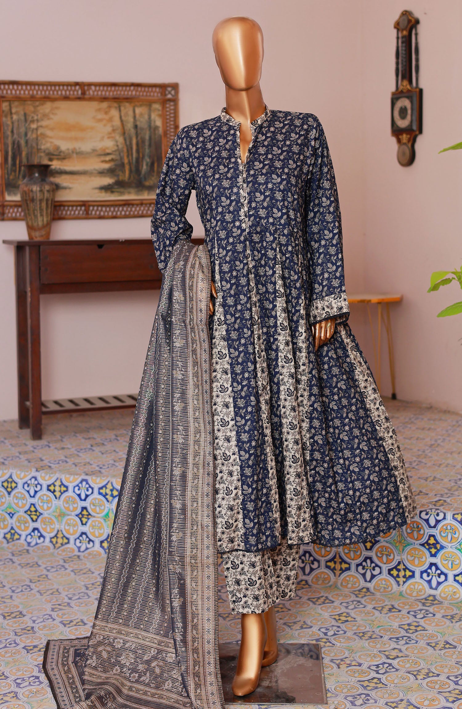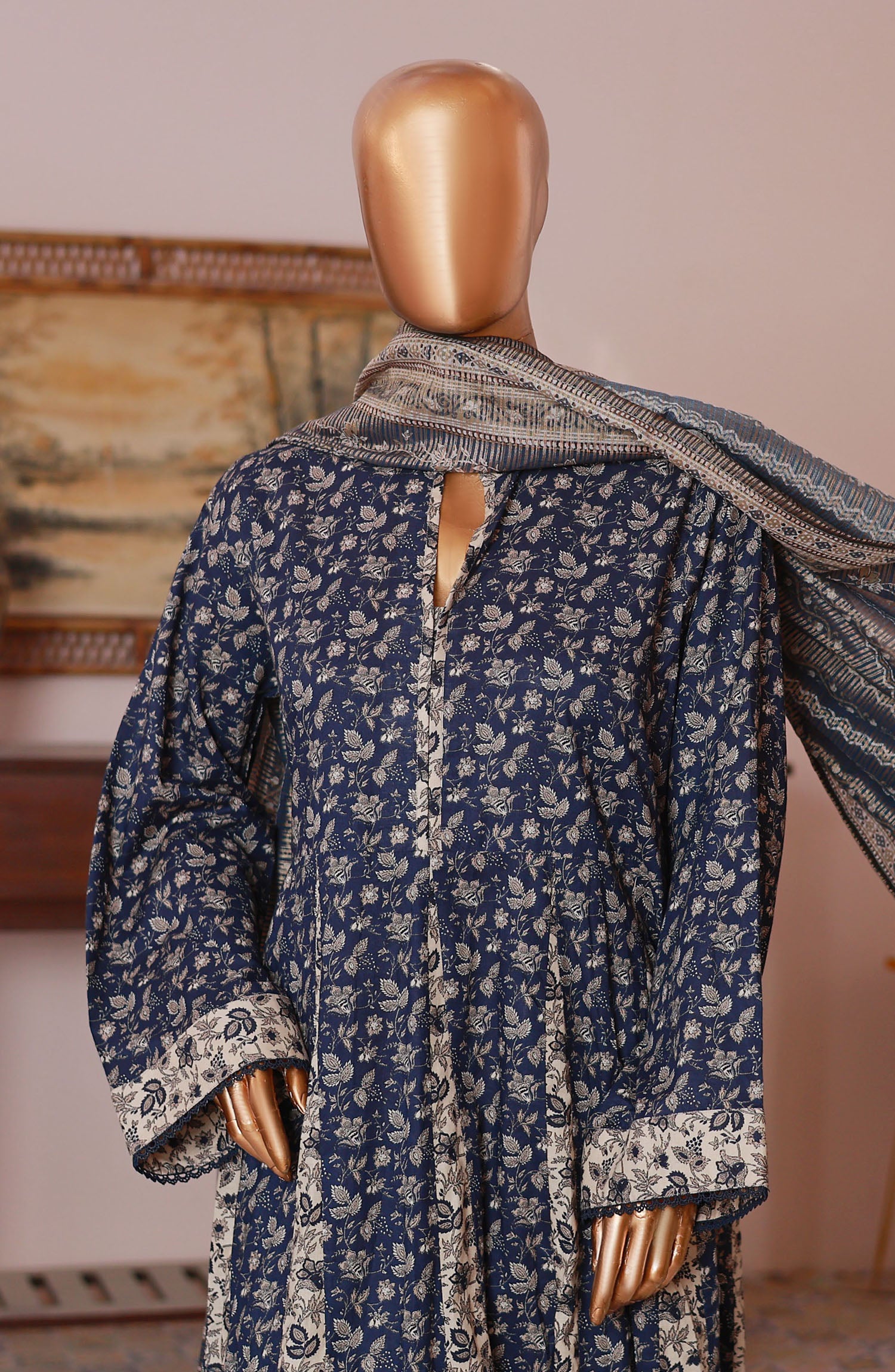 The standard style comes as a long-sleeved kameez with dupatta and trouser/shawlar.