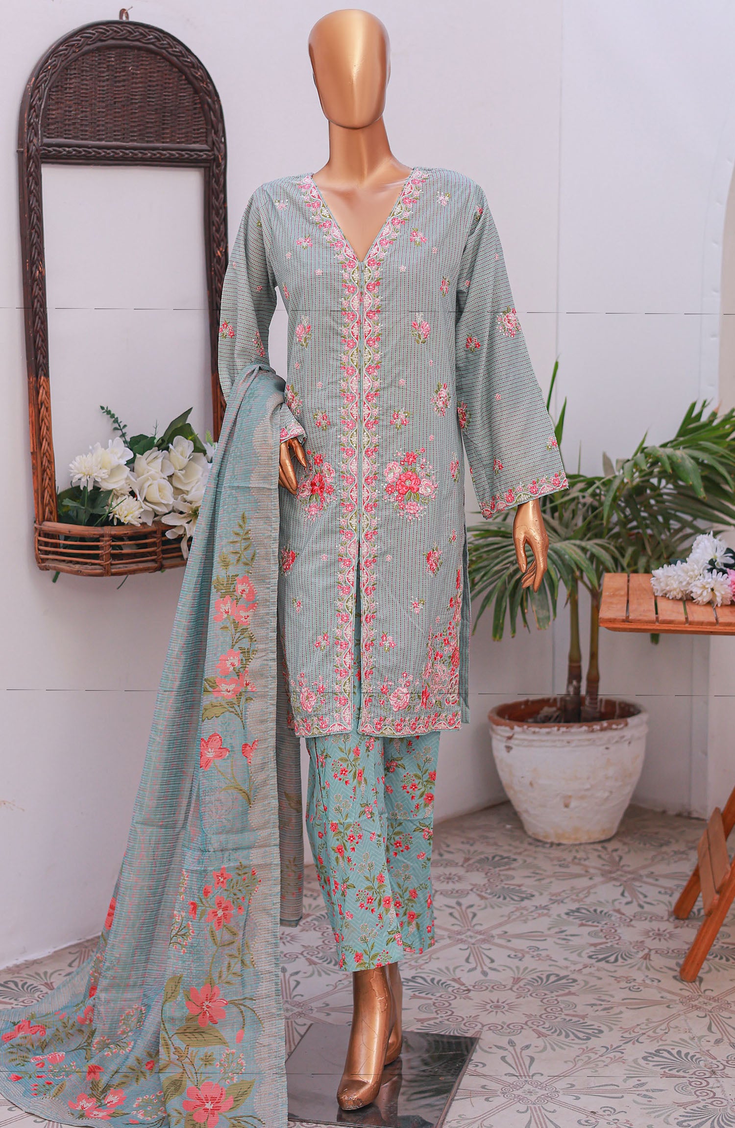 Home Bin Saeed Self Stripe Stitched 3 Piece Suit - D-04 - BS25EKCR - Blue - Summer Collection