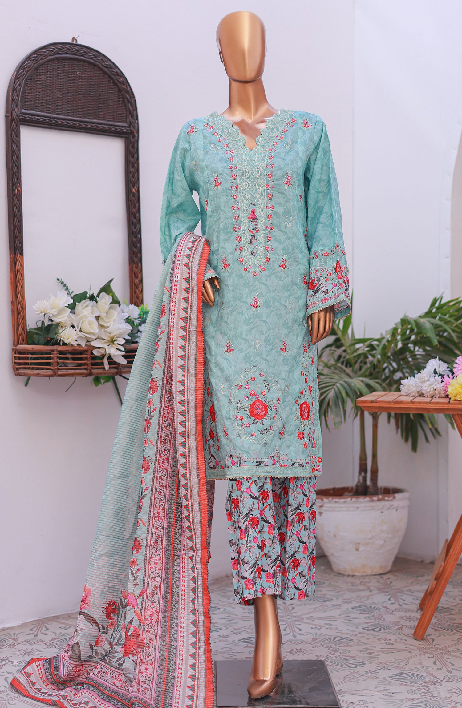 Bin Saeed Self Stripe Stitched 3 Piece Suit - D-06 - BS25EKCR - Blue - Summer Collection