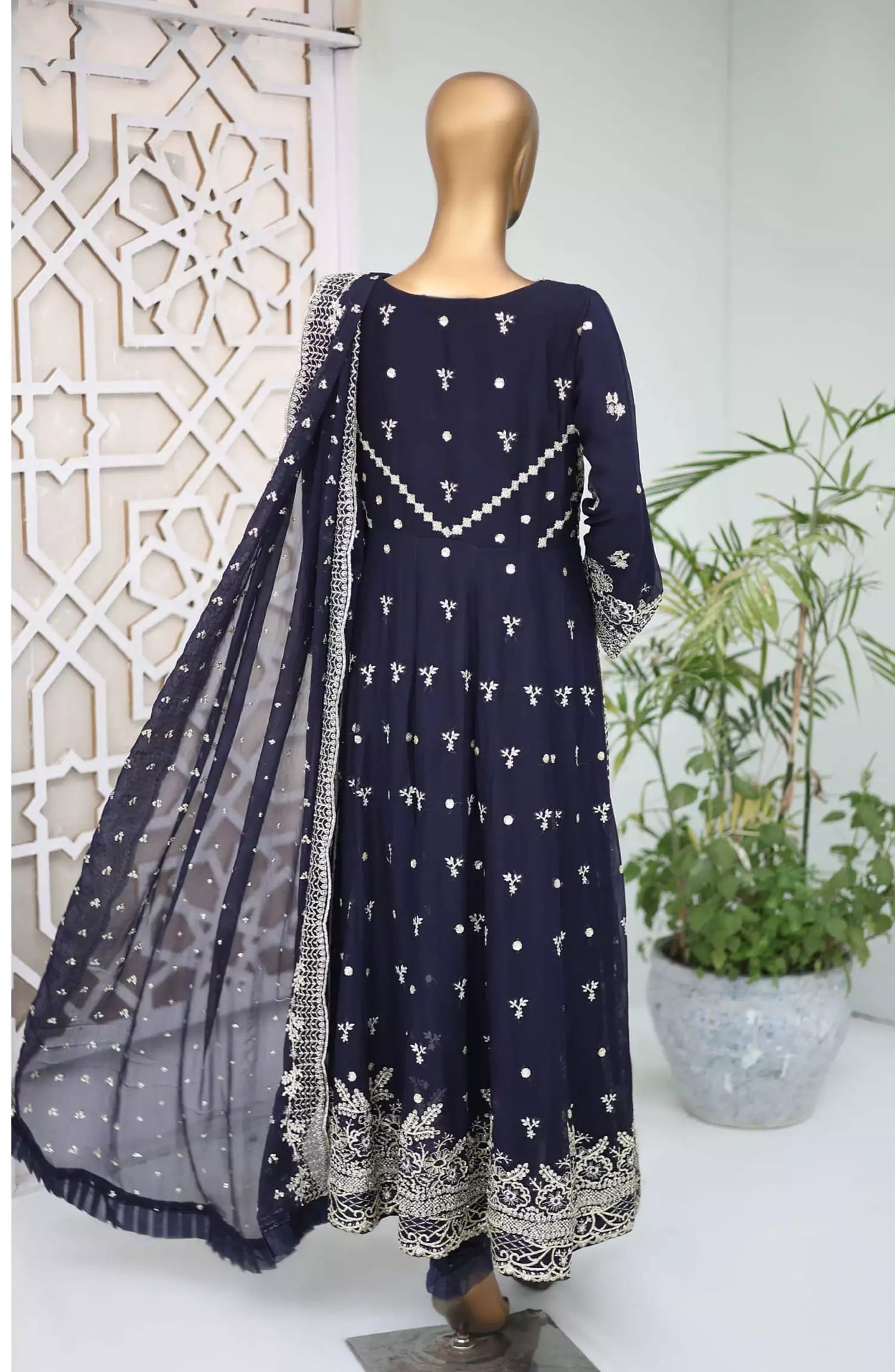 3 Piece Stitched Luxury Embroidered Chiffon Frock with Full Embroidered Dupatta and Trouser .