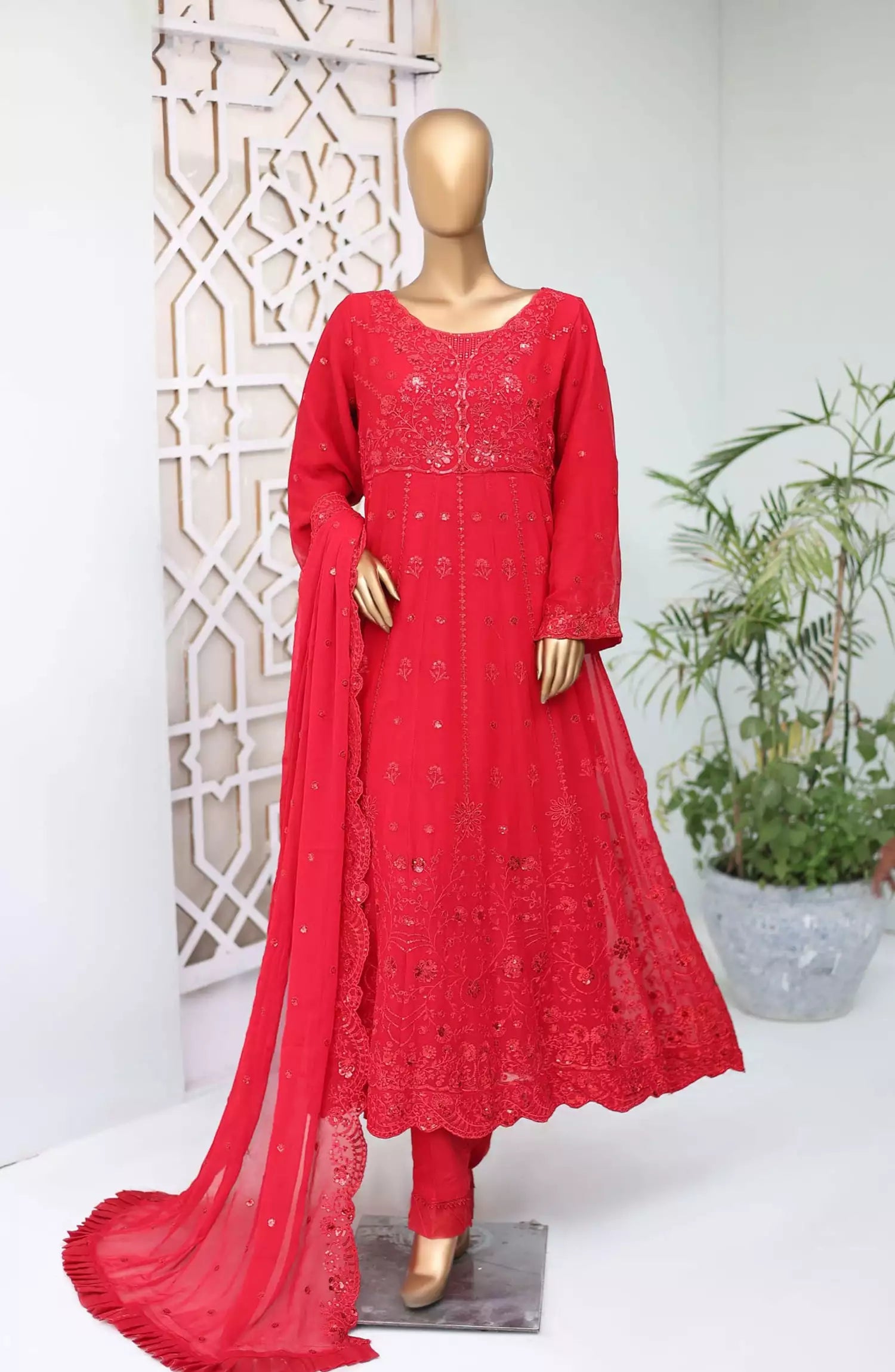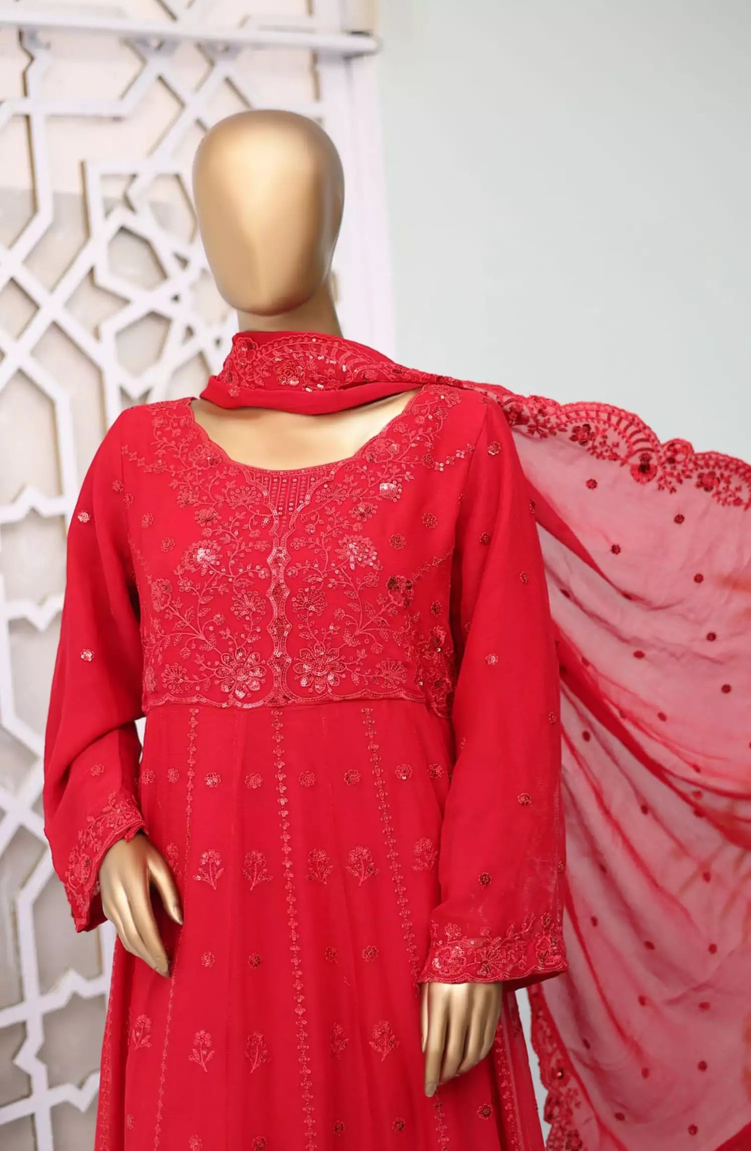 3 Piece Stitched Luxury Embroidered Chiffon Frock with Full Embroidered Dupatta and Trouser .