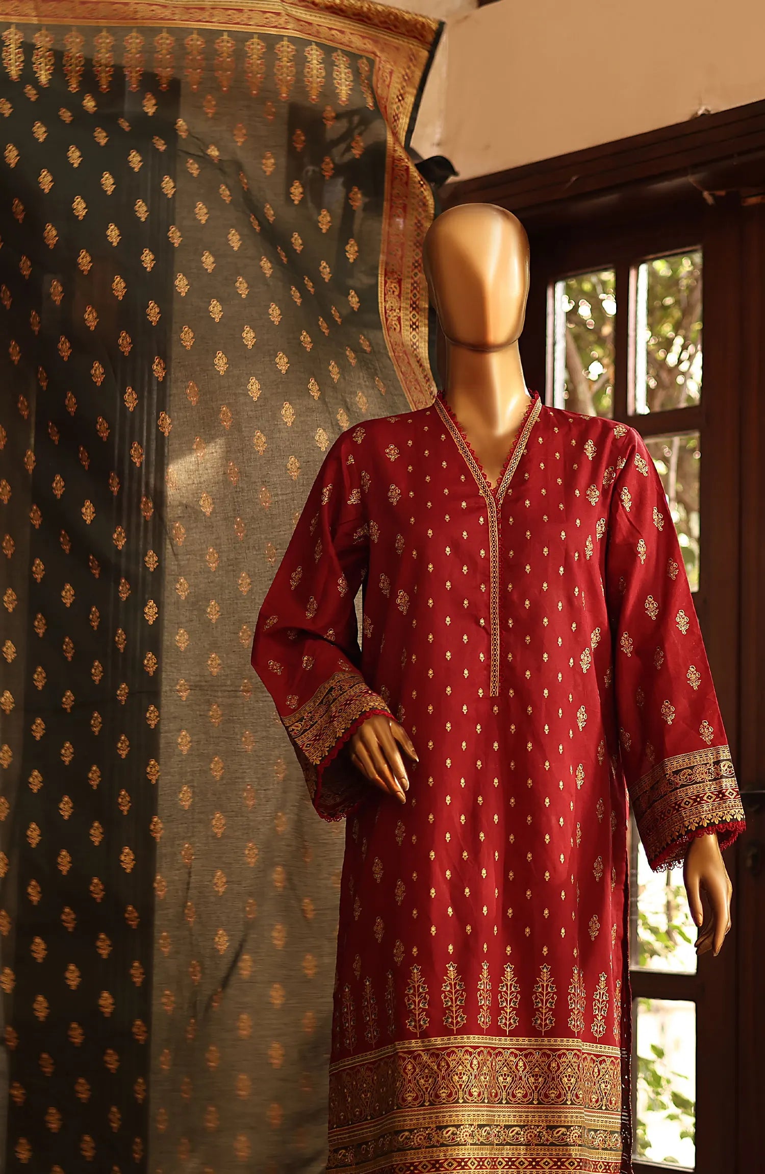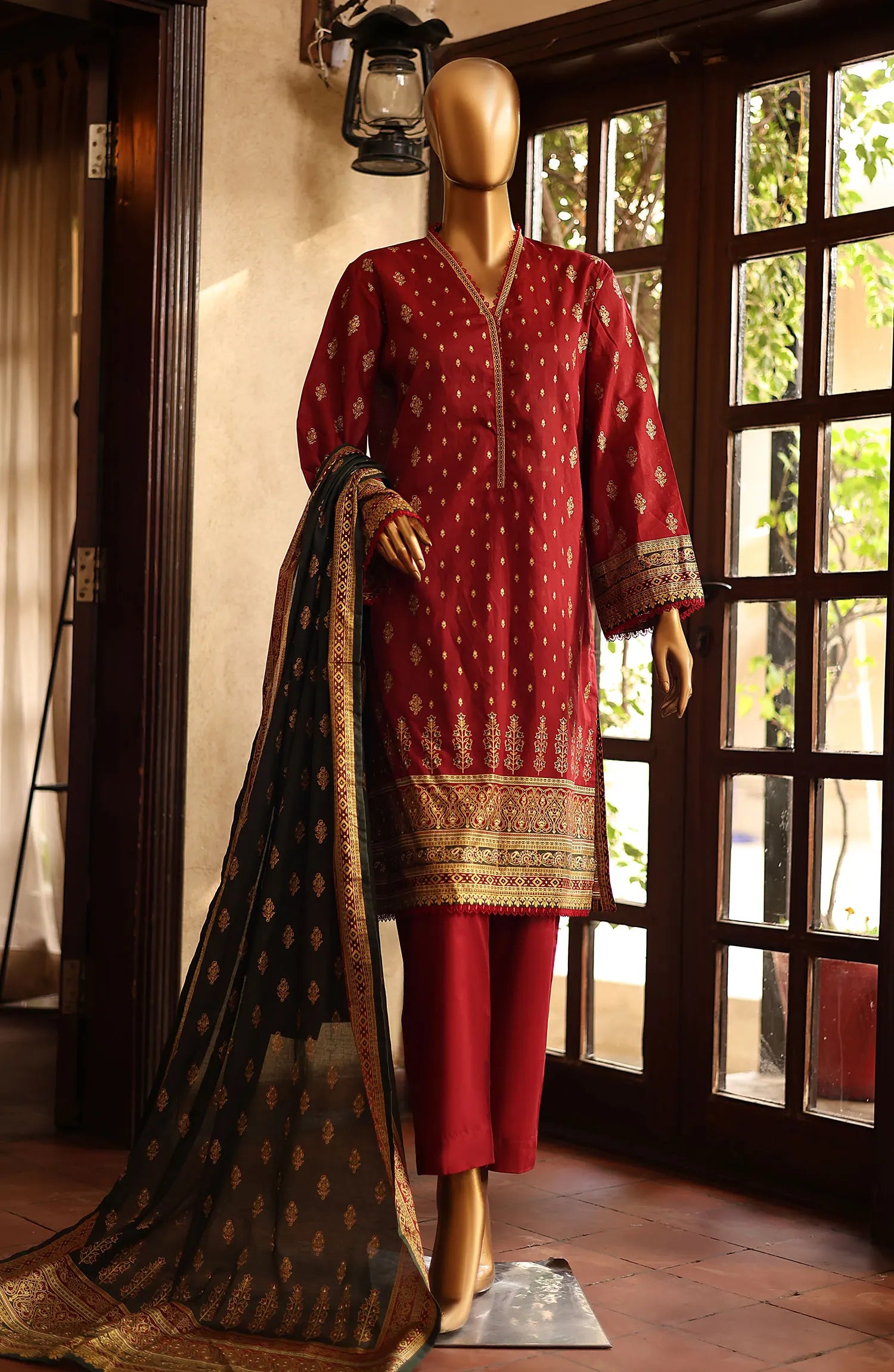 Modest Embroidered Khaddar Stitched 3 Piece Suit - 10050-Mar - MOD25WNT - Maroon - Winter Collection