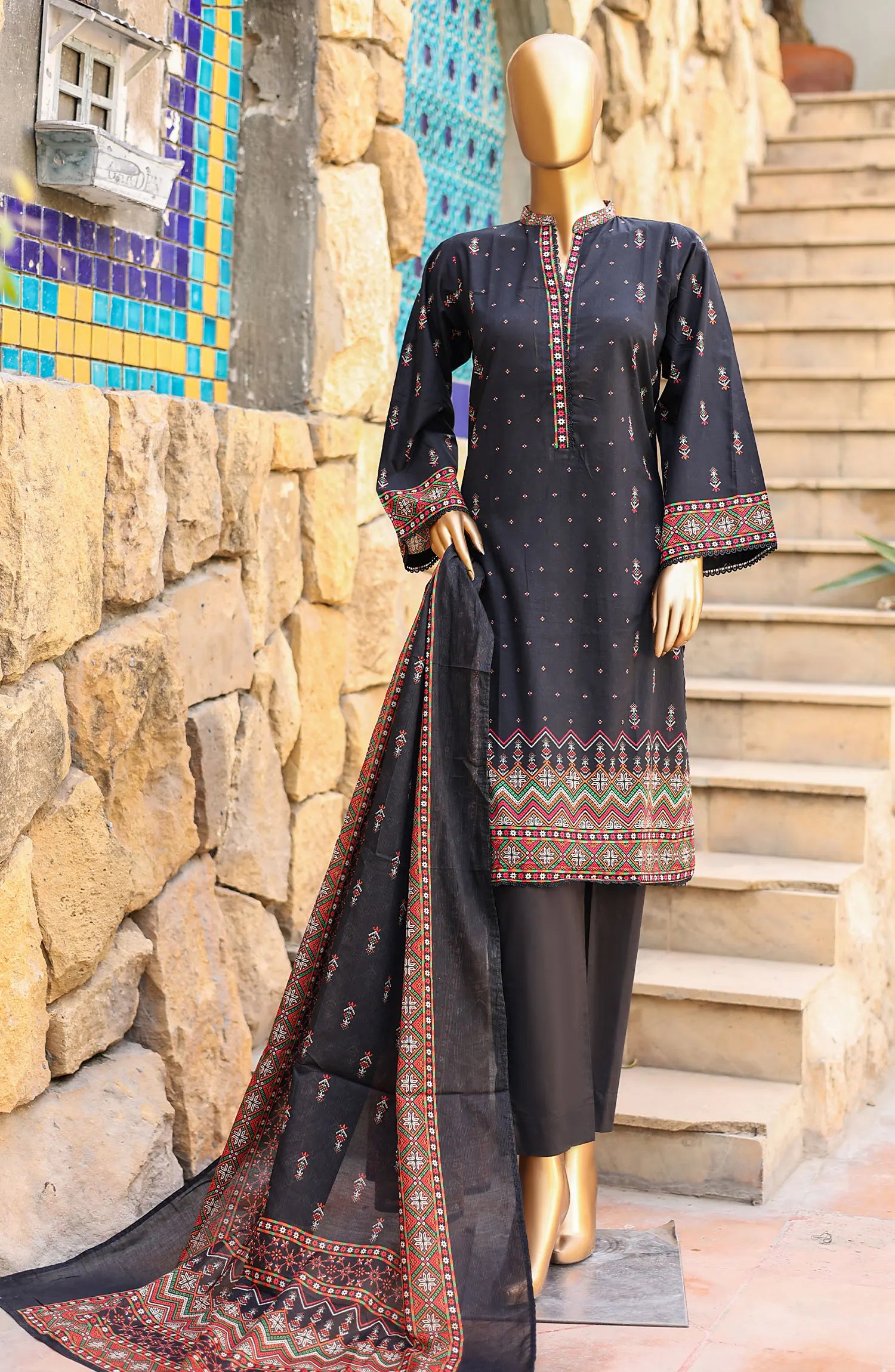 Modest Embroidered Khaddar Stitched 3 Piece Suit - 9990-Blk - MOD25WNT - Black - Winter Collection