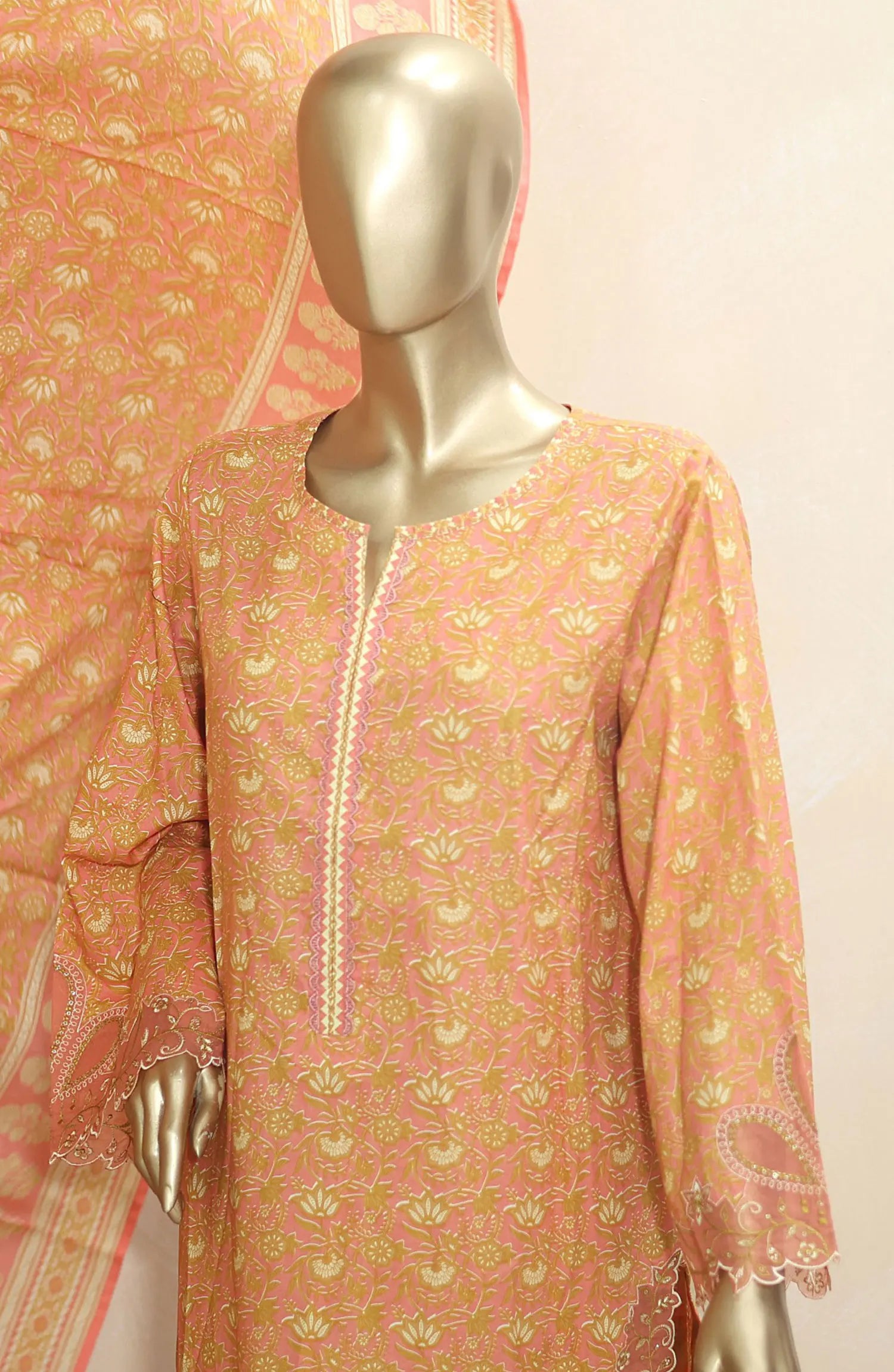 Modest Embroidered Khaddar Stitched 3 Piece Suit - 10040-Pnk - MOD25WNT - Pink - Winter Collection
