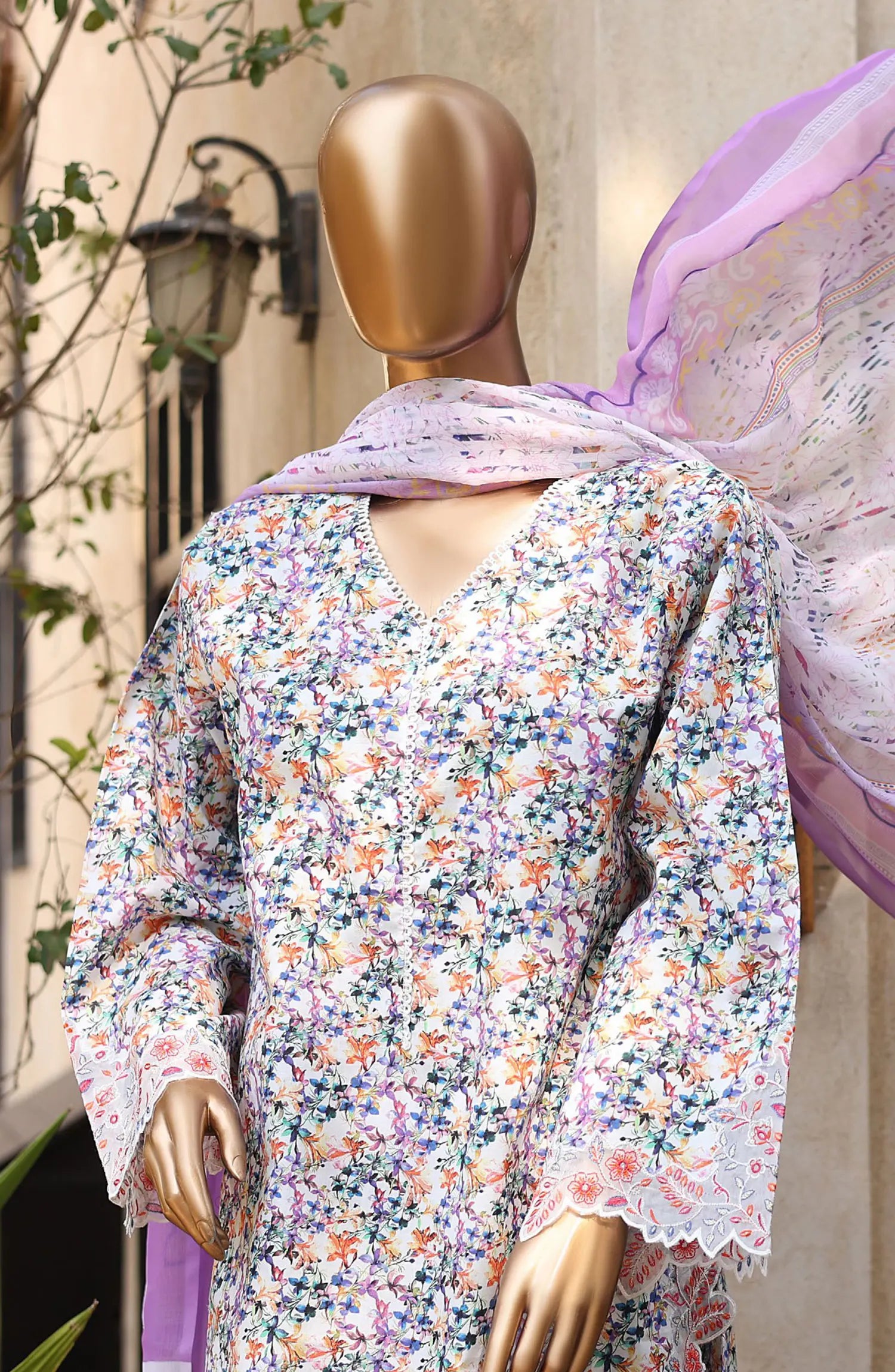 Bin Saeed Summer Lawn with Chiffon Dupatta Collection 2024 has been styled in the image for photography and illustrative purposes.