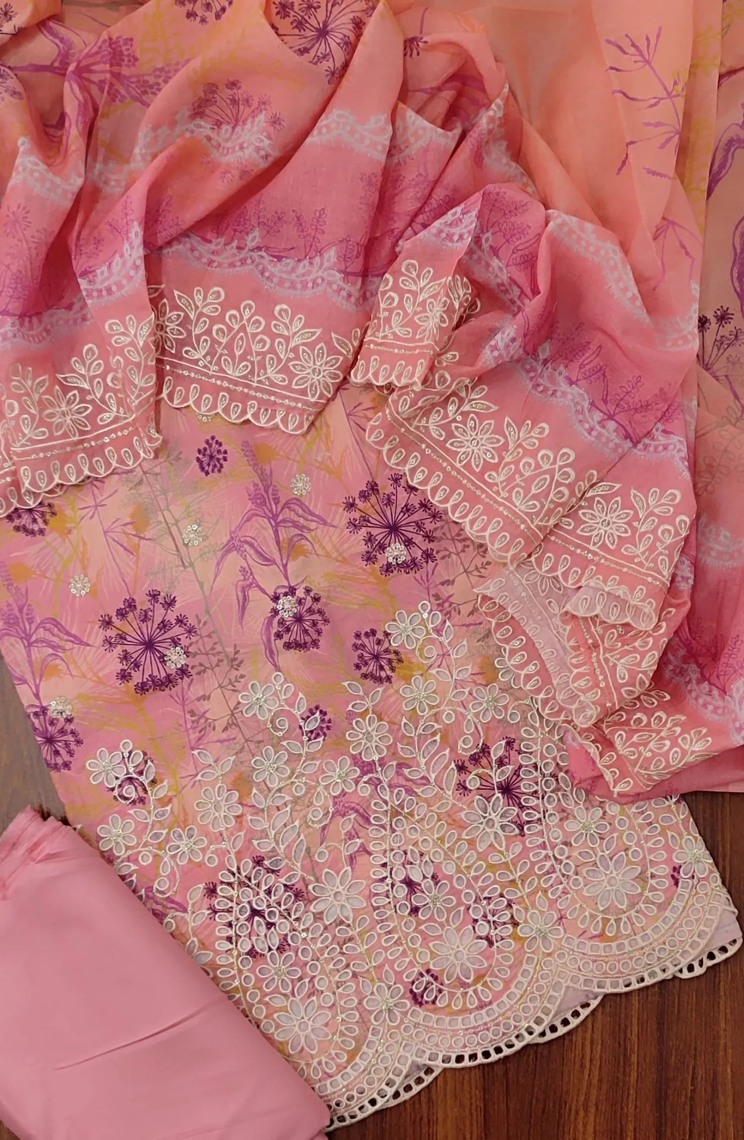 Ayla Embroidered Chambray Stitched 2 Piece Solids - EAE210105A - AY25SW - Pink - Winter Collection