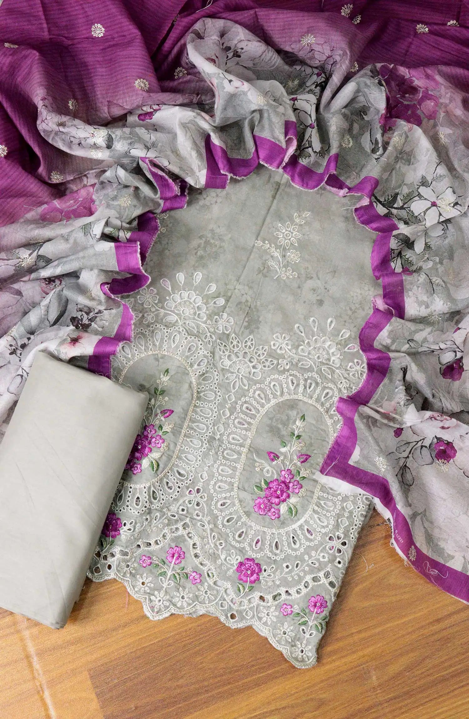 3 Piece Unstitch Printed and Embroidered Cambric Cotton Suit.
