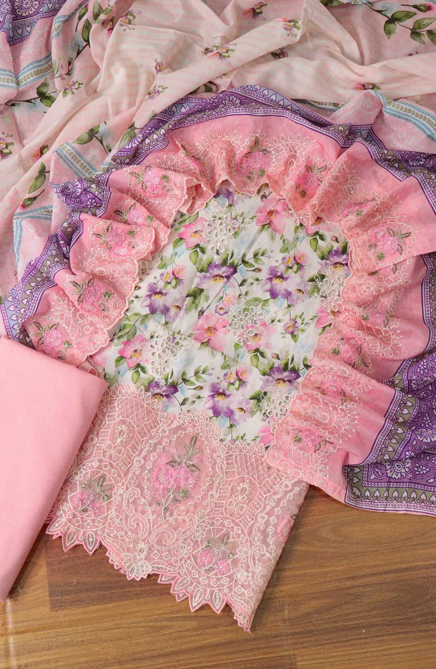 3 Piece Unstitch Printed and Embroidered Cambric Cotton Suit.