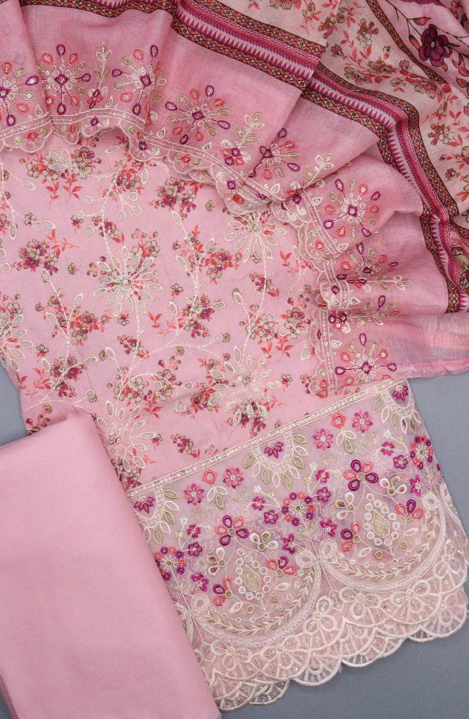 3 Piece Unstitched Printed and Embroidered Cotton Suit.