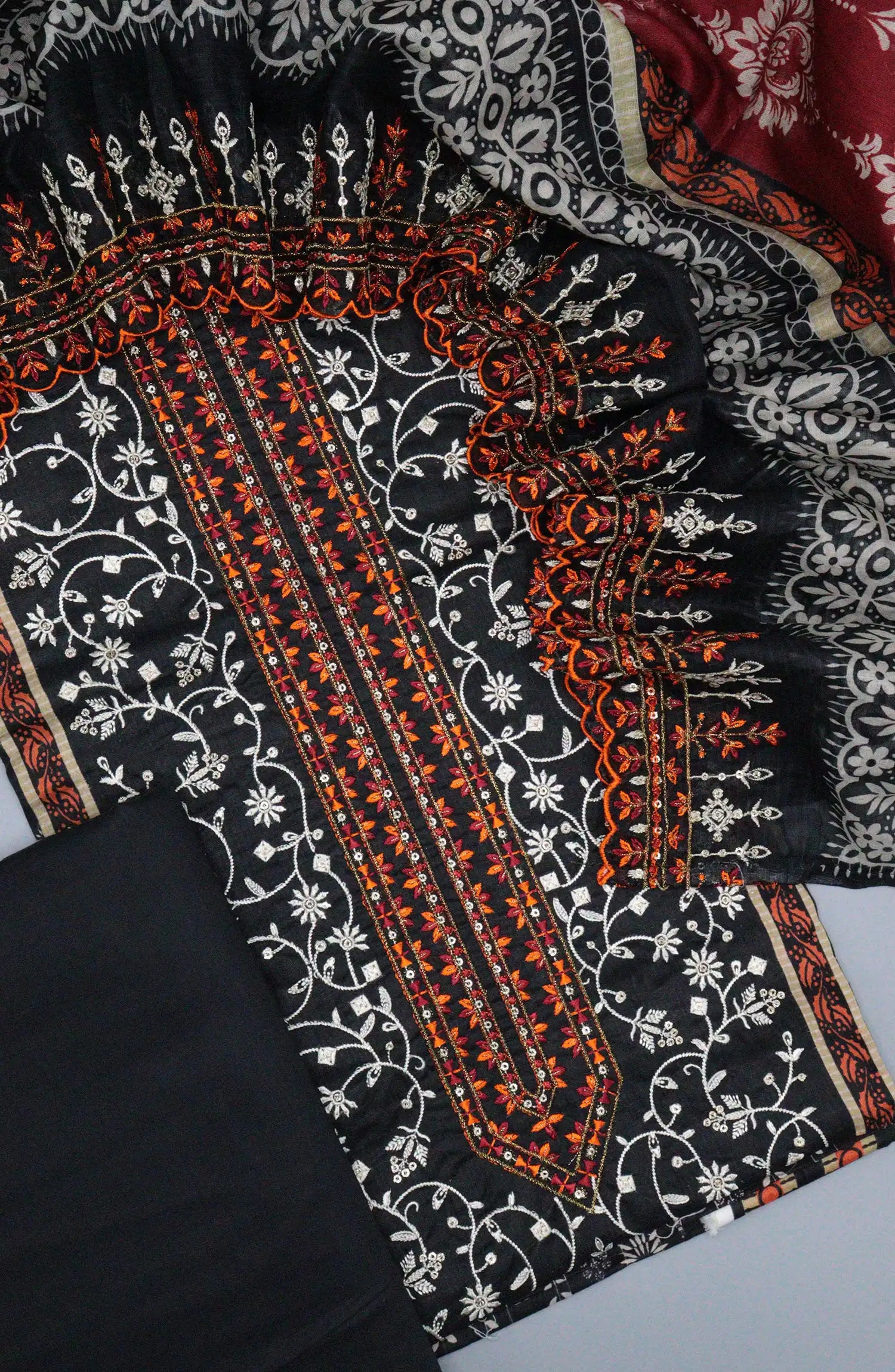 3 Piece Unstitched Printed and Embroidered Cotton Suit.