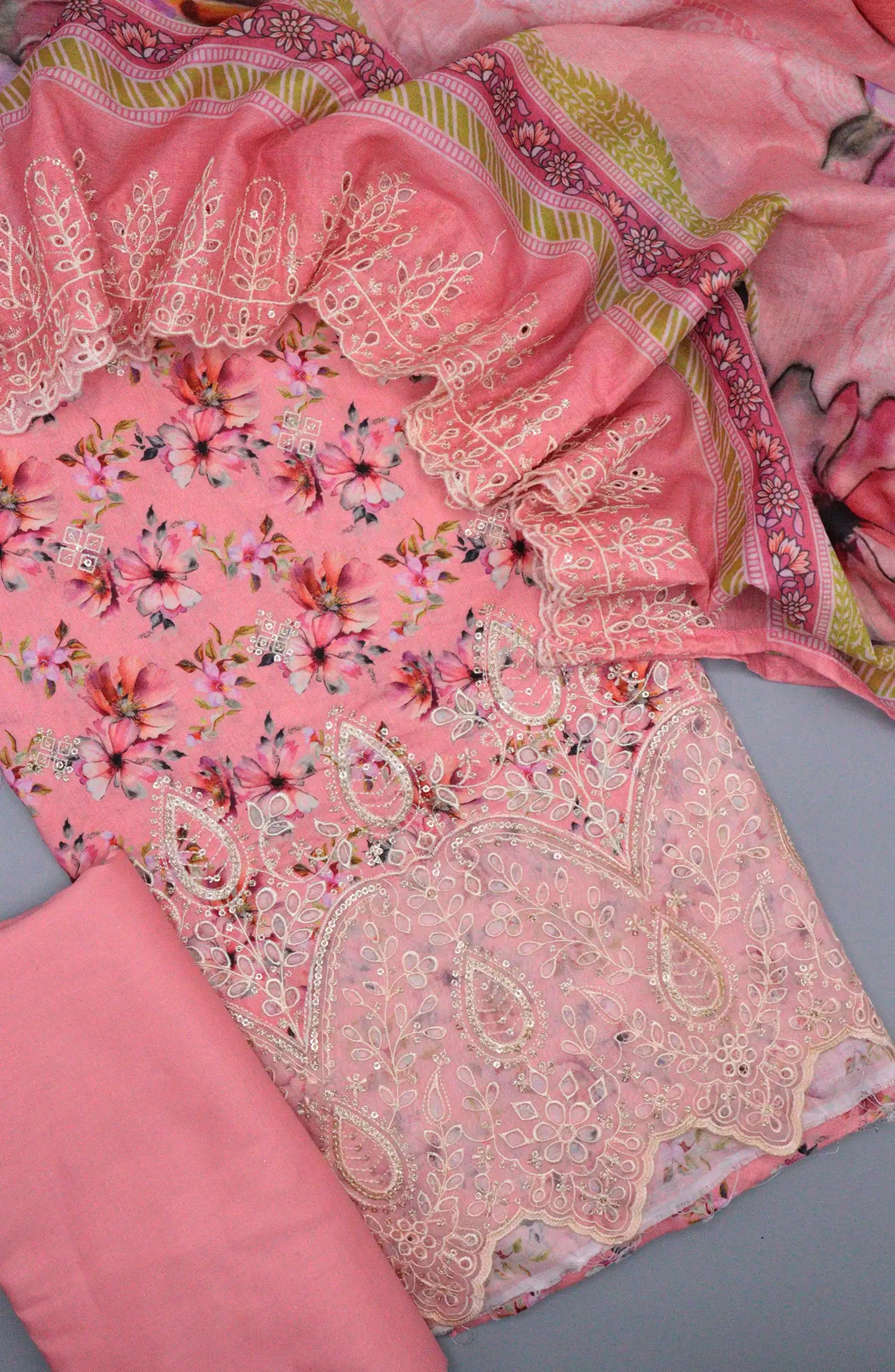 3 Piece Unstitched Printed and Embroidered Cotton Suit.