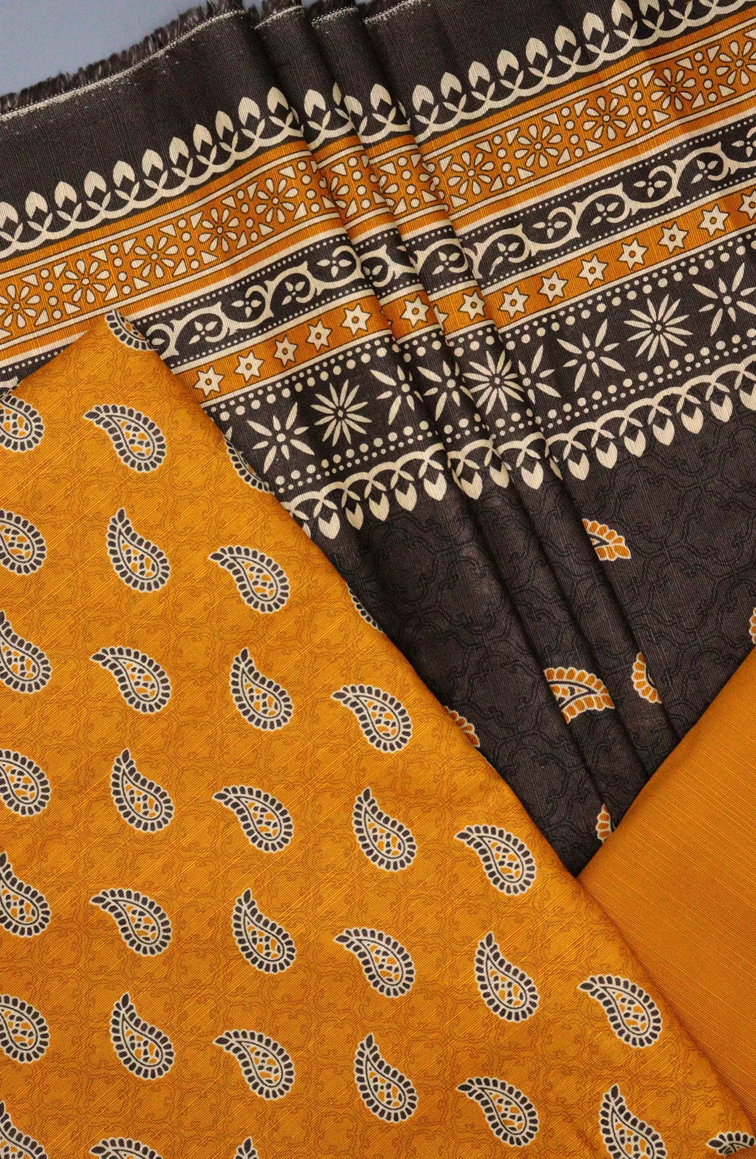Aylin Luxury Embroidered Raw Silk Unstitched 3 Piece Suit - 06 Mustard Charm - AYL26SL - Mustard - Festive Collection