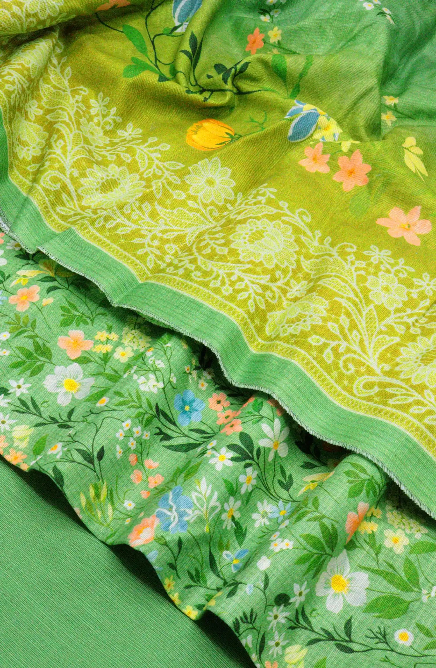 Aylin Luxury Embroidered Raw Silk Unstitched 3 Piece Suit - 04 Green Slate - AYL26SL - Green - Festive Collection