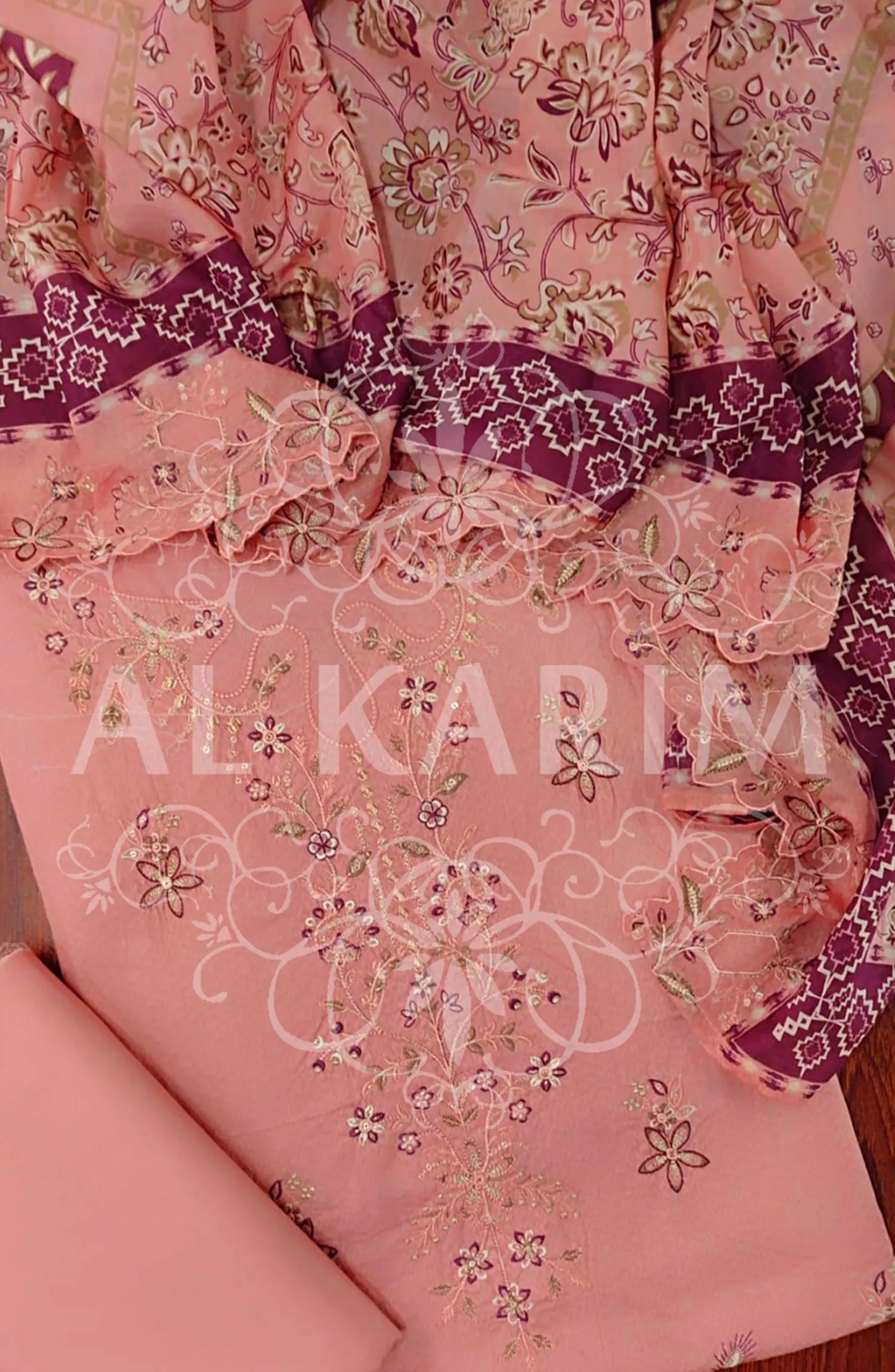 Amna Khadija Embroidered Crinkle Chiffon Unstitched 3 Piece Suit - D-03 - AM25LXC - Peach - Formals Collection
