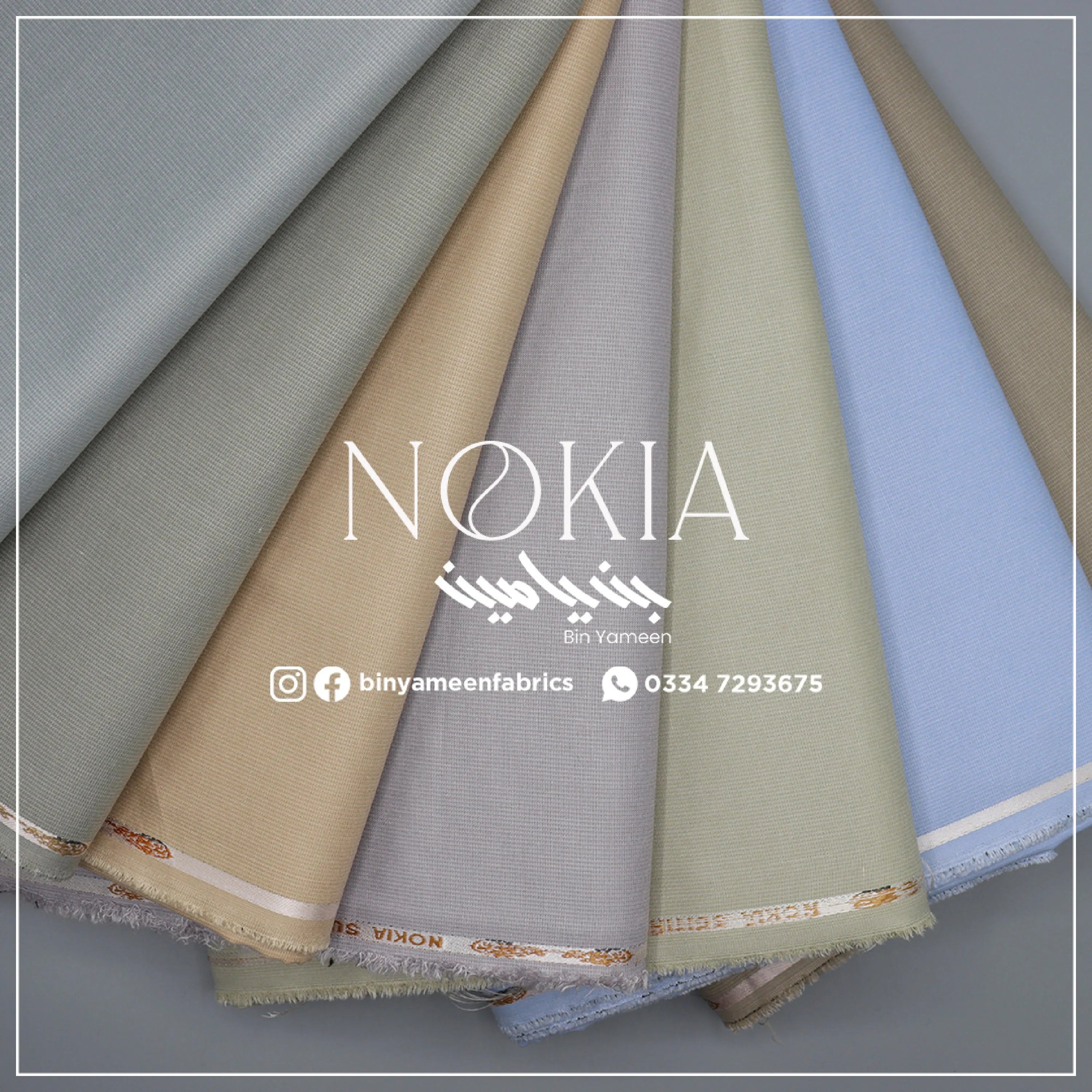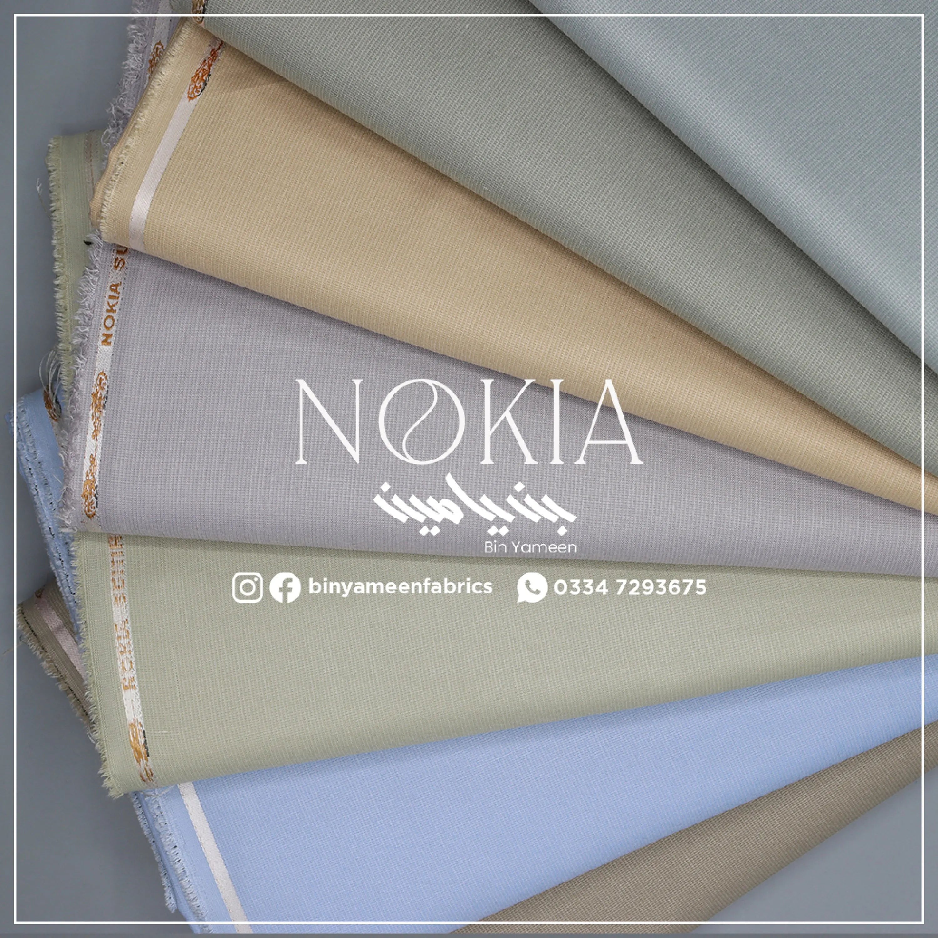 BINYAMEEN>NOKIA\r\nPRICE;- 2490\r\nINTRODUCTION\r\n\r\n\r\n Shop the collection now, and celebrate summer with us\r\n⢠Type: Un-stitched\r\n⢠Stuff/Material: BLENDED/ Soft and comfortable\r\n⢠Cutting/Length: 4.25 Meters\r\n⢠Width/Arz:\"55\"56 inches\r\n⢠Sheling/Shrink: Required\r\n⢠For All Seasons\r\n⢠Comfortable, Soft, Light-Weight,\r\n⢠Reliable Stuff\r\n⢠Guarantee of fabric, color-fade, and 100% return policy.\r\n⢠Price:2490/- ( 4.25 Mtr)"}" data-sheets-userformat="{"2":13185,"3":{"1":0},"10":1,"11":3,"12":0,"15":"Calibri","16":10}">The Nokia Collection is men's unstitched casual fabric, which has medium weight with premium blended fabric, and is durable and washable. So be ready to make a statement with Bin Yameen.