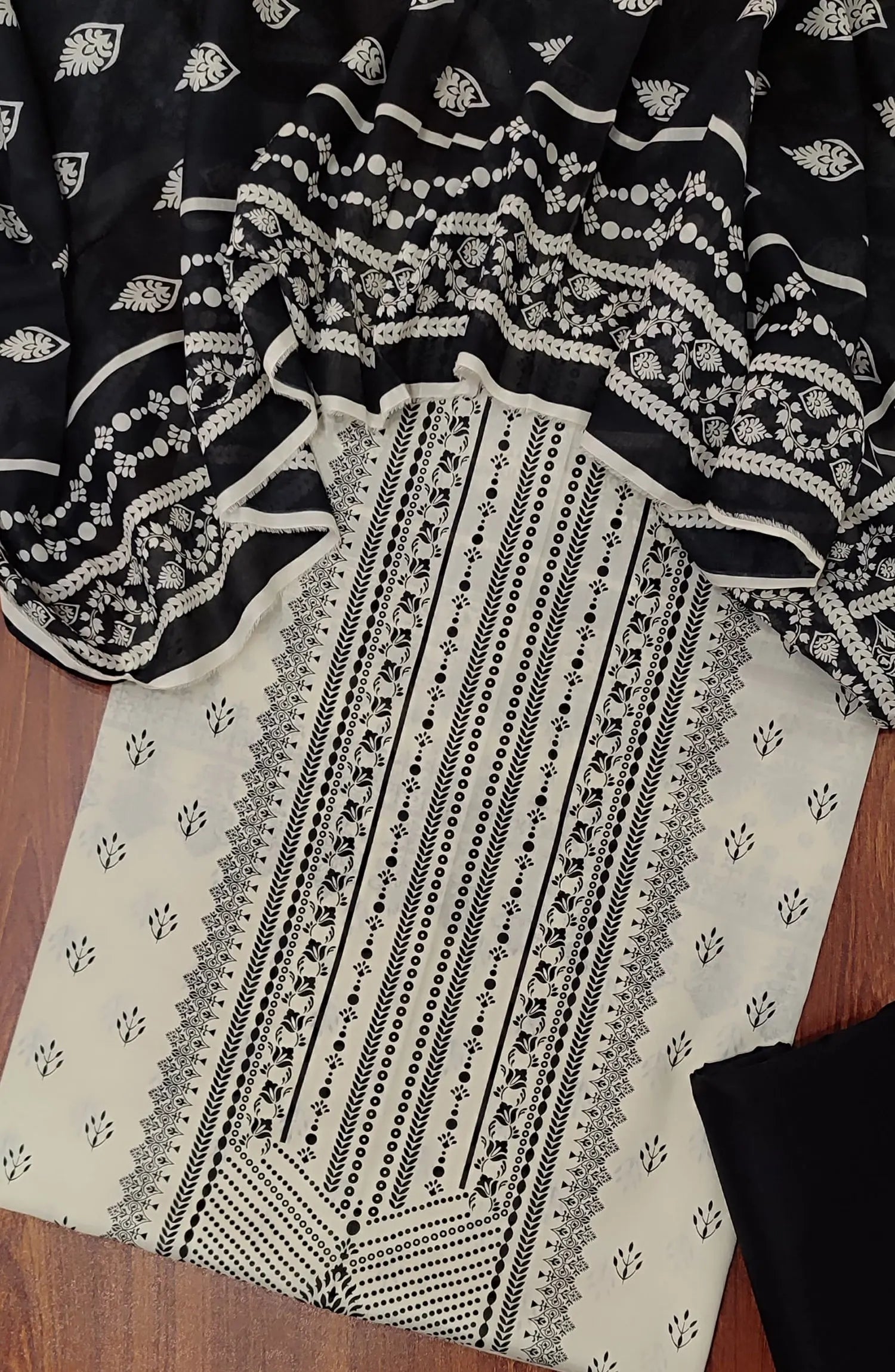 Black And White 3 Piece Printed Lawn Collection 2024 - BNW 12