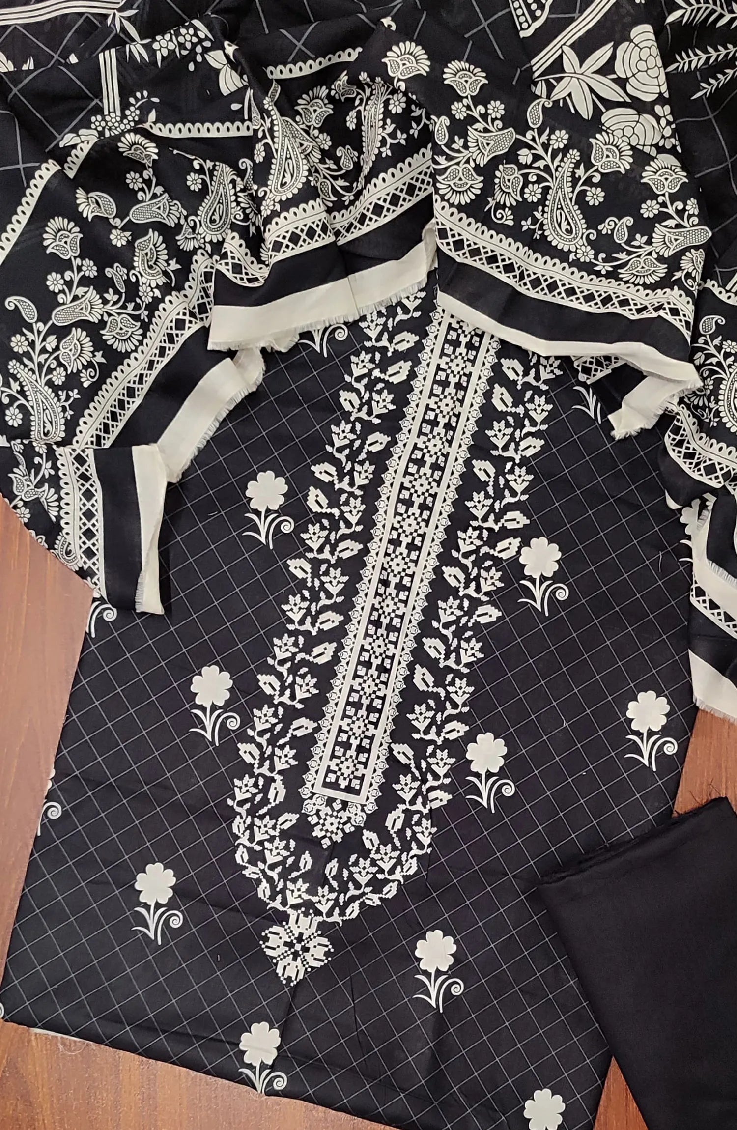 Black And White 3 Piece Printed Lawn Collection 2024 has been styled in the image for photography and illustrative purposes.
