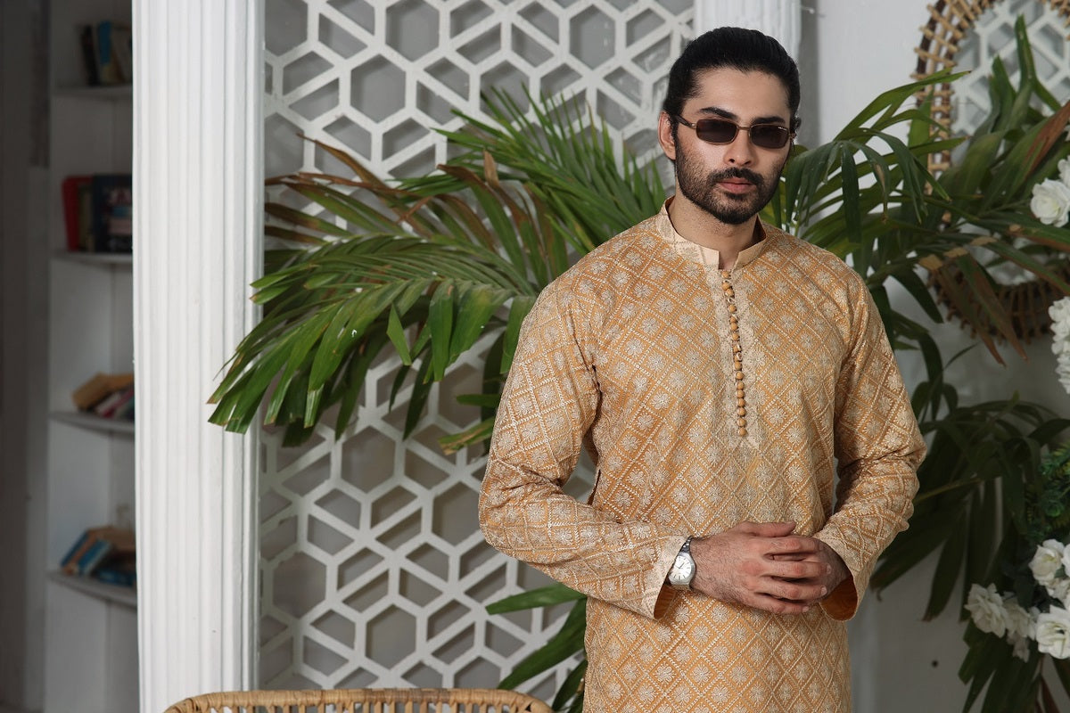 Men's Formal Kurta Shalwar on Chikan Embroidery with Fancy Ball Buttons