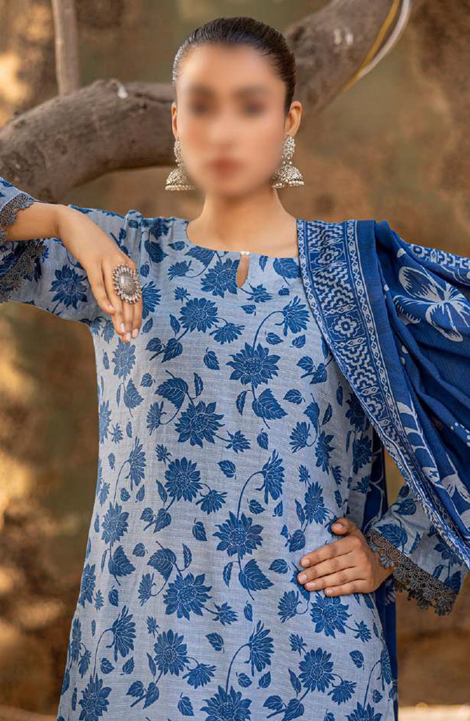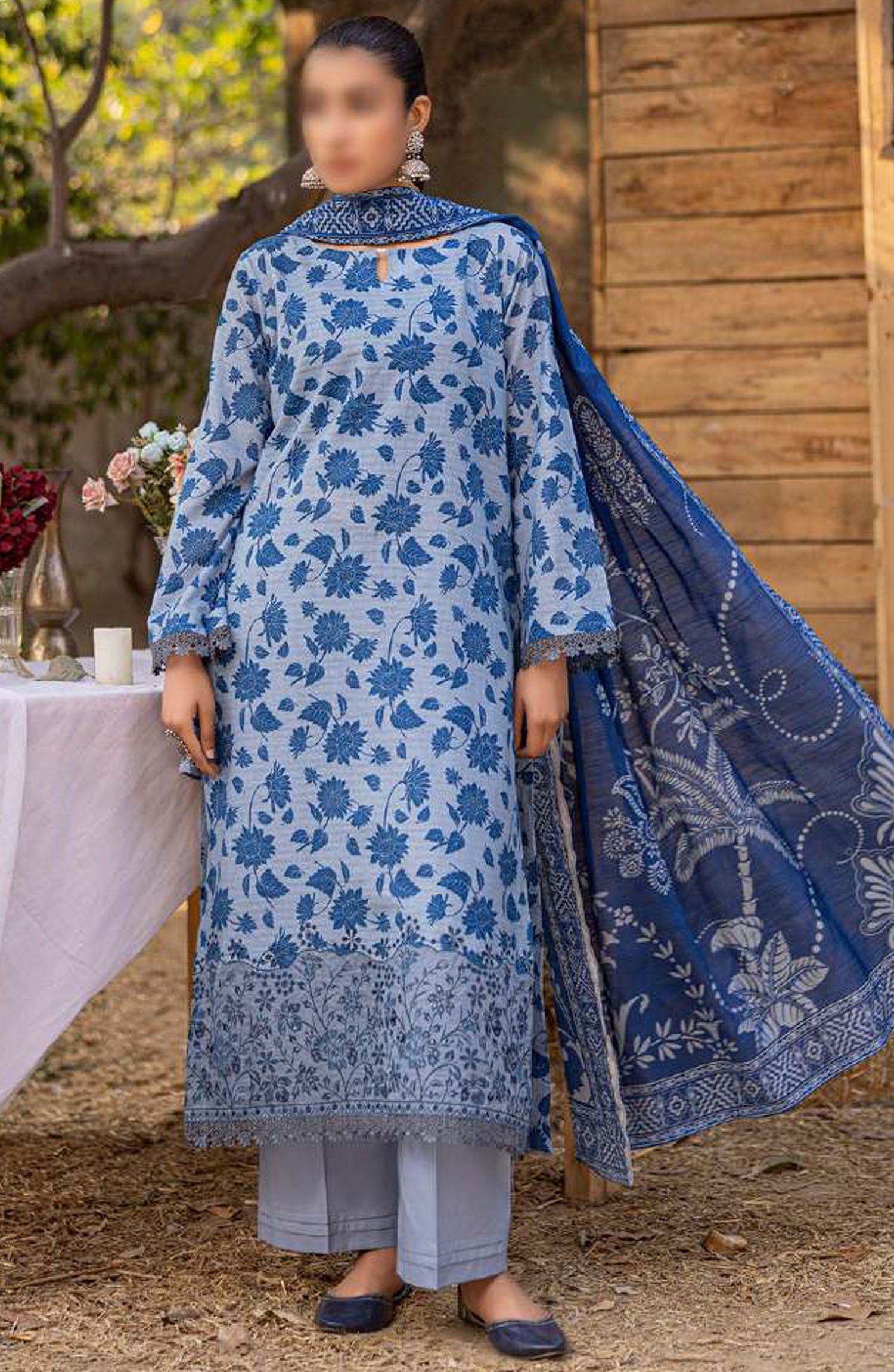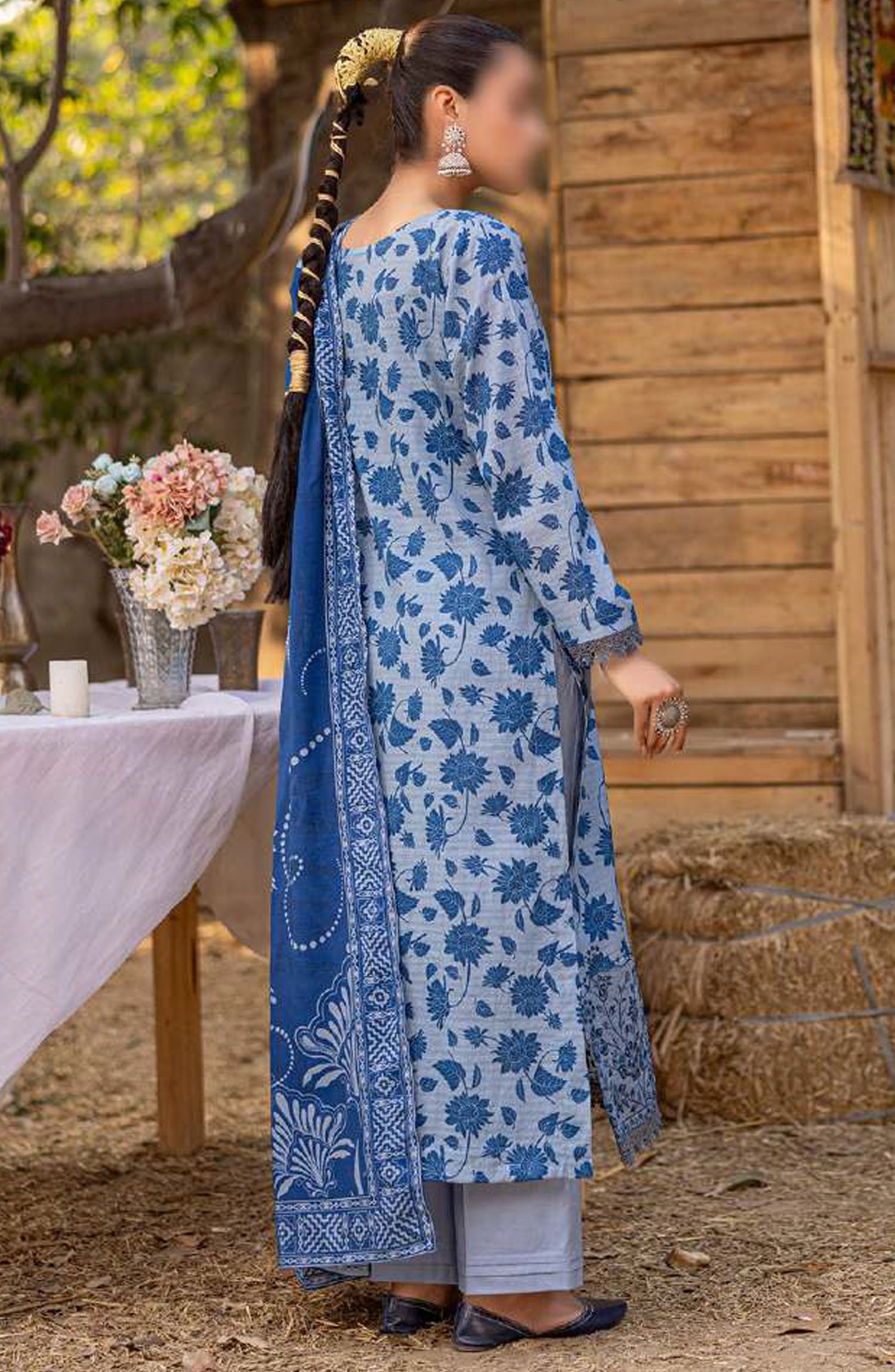 Home Bloom by Al Karim Embroidered Lawn Unstitched 3 Piece Suit - D-3 - ALK25BELV6 - Blue - Summer Collection