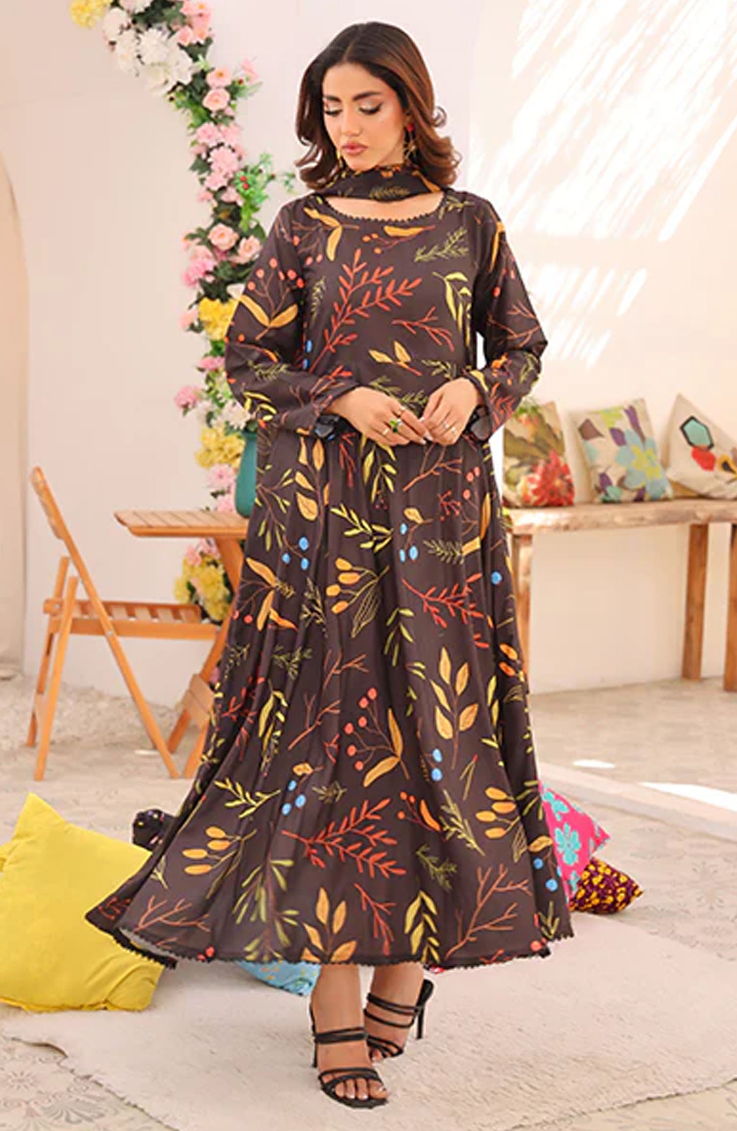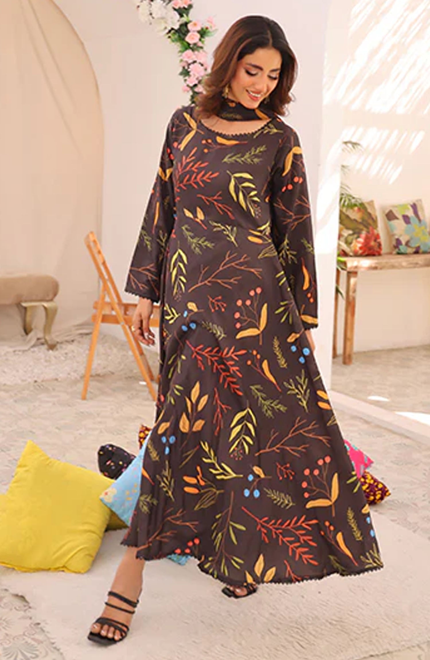 Bloom by Nazmina Printed Lawn Stitched 3 Piece Suit - Fleeting Essence (LD-31) - NZM25BL - Brown - Summer Collection