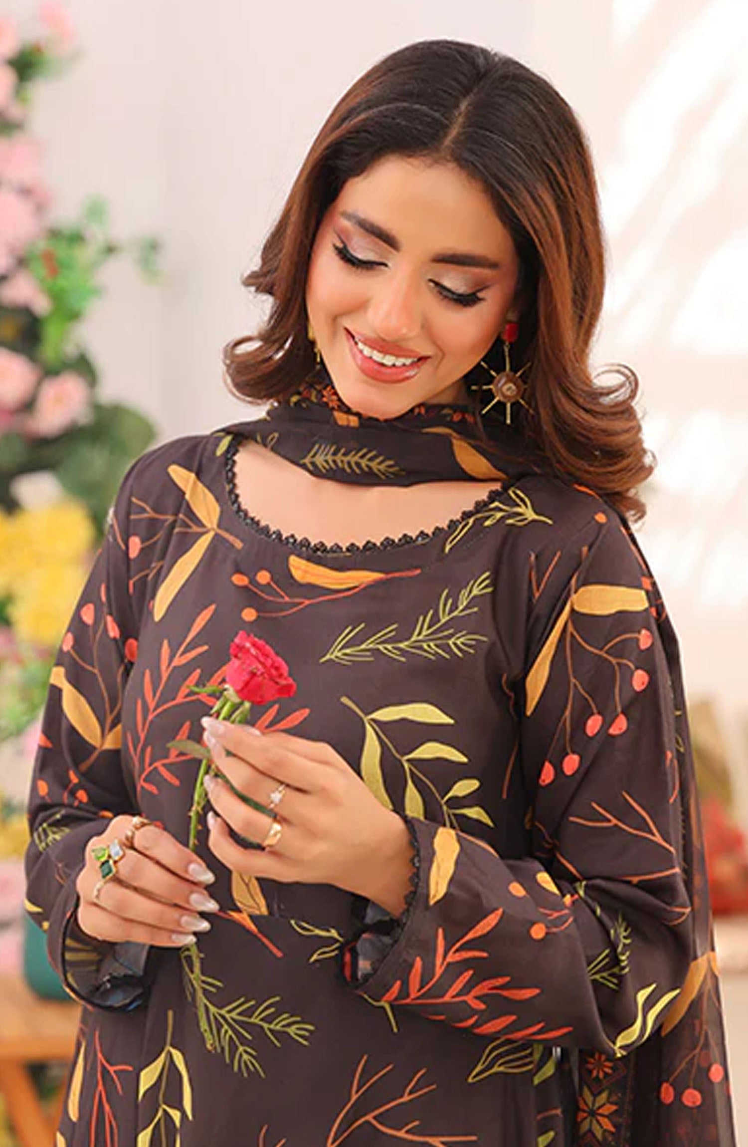 Home Bloom by Nazmina Printed Lawn Stitched 3 Piece Suit - Fleeting Essence (LD-31) - NZM25BL - Brown - Summer Collection
