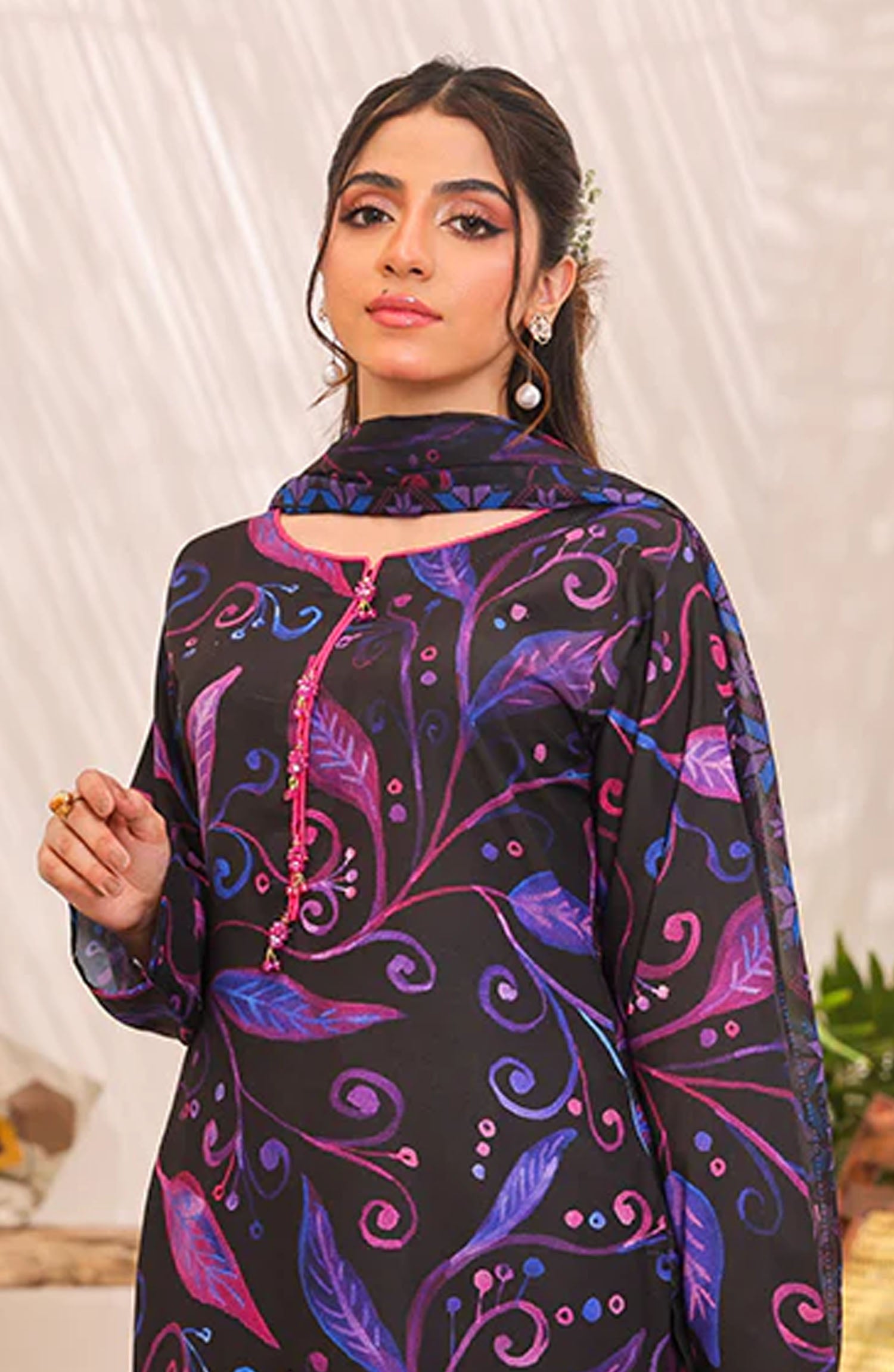 Bloom by Nazmina Printed Lawn Stitched 3 Piece Suit - Move Affairs (LD-54) - NZM25BL - Black - Summer Collection