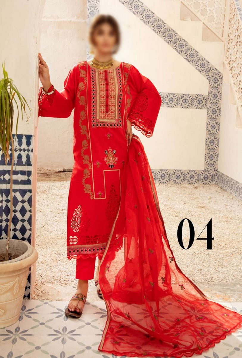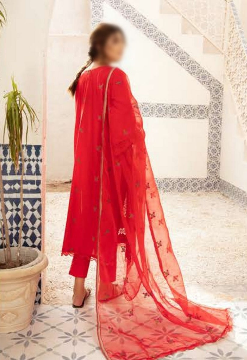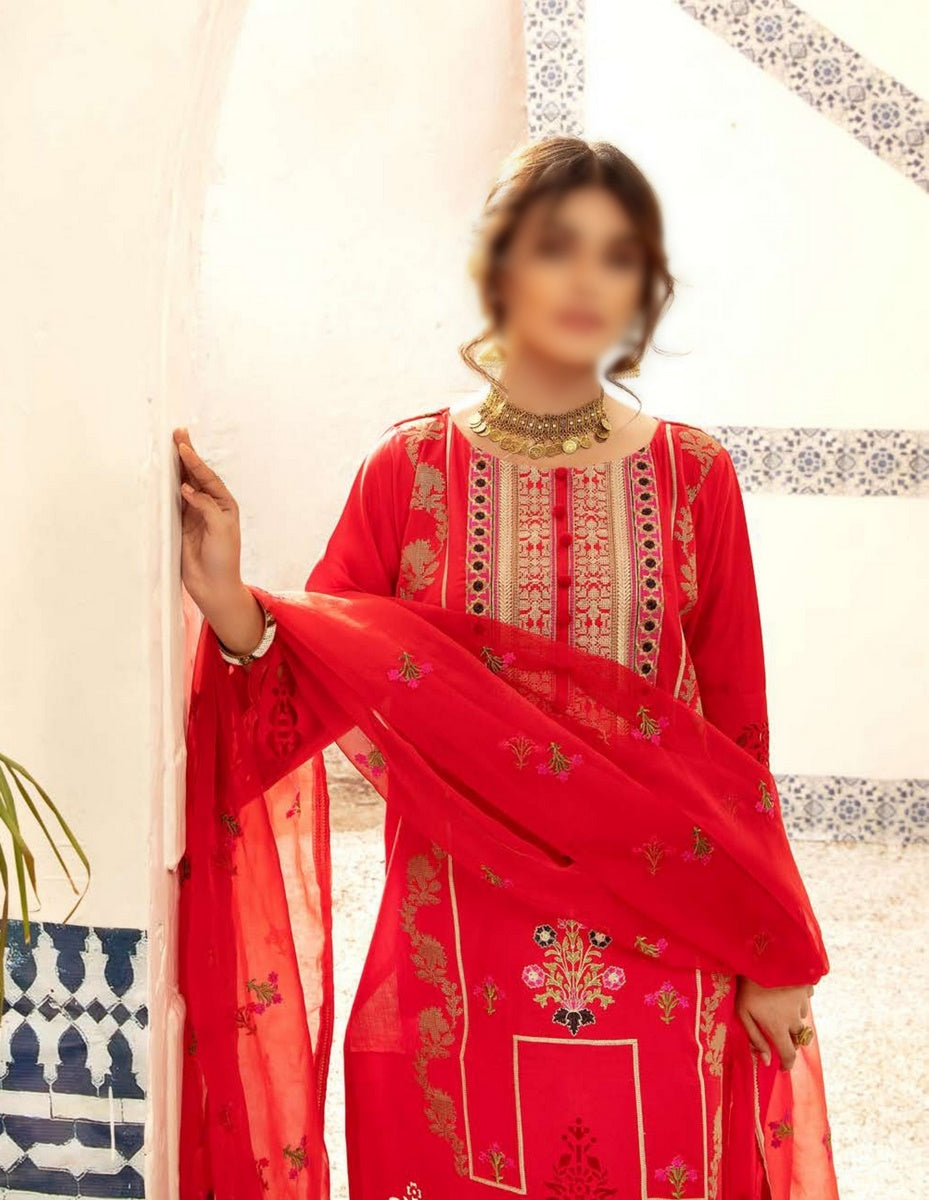 The standard style comes as a long-sleeved kameez with dupatta and trouser/shalwar.