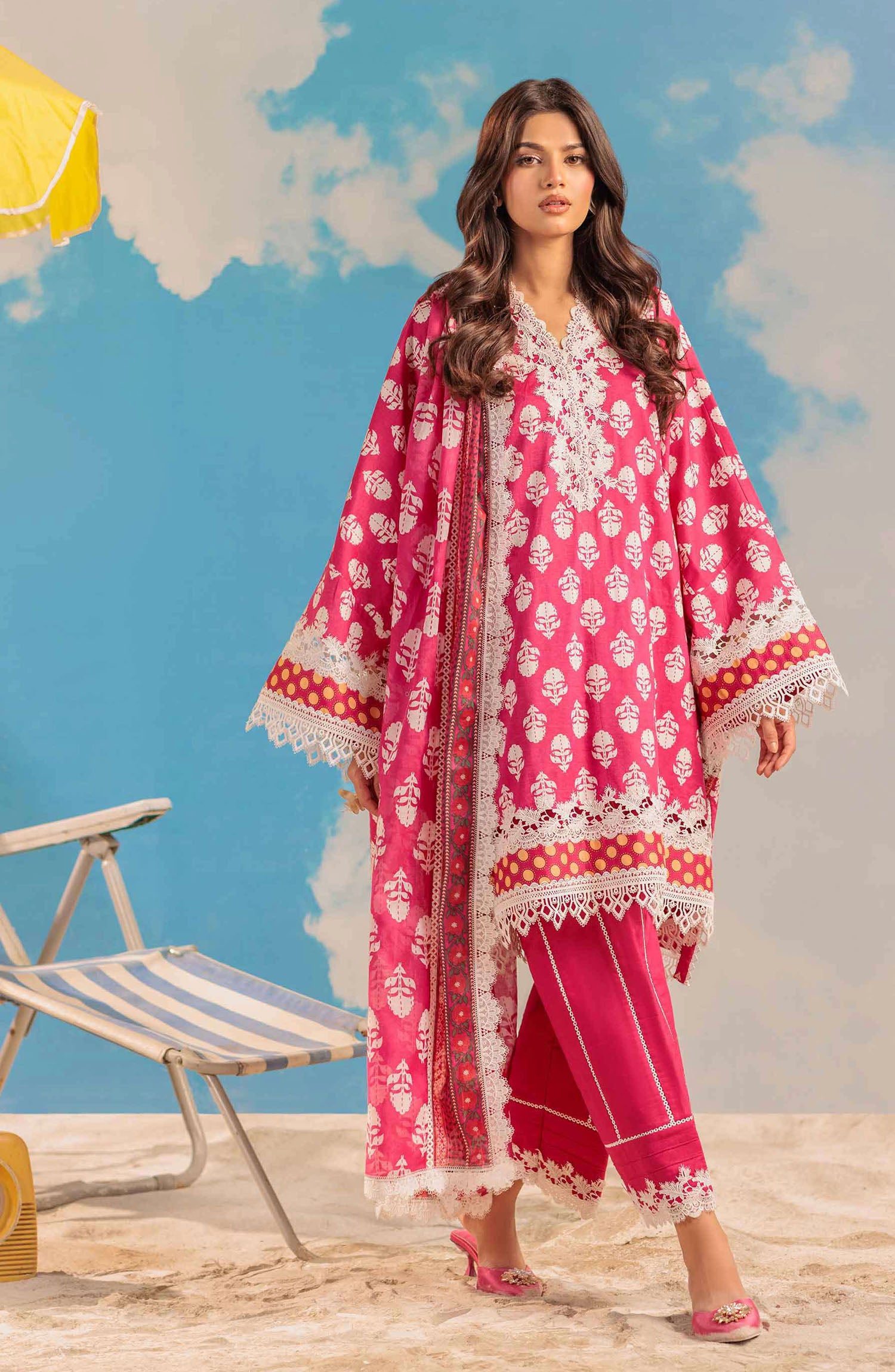 Home Bonanza Satrangi Embroidered Lawn Unstitched 3 Piece Suit - WSS25P3019 - BOS25THD1 - Pink - Summer Collection