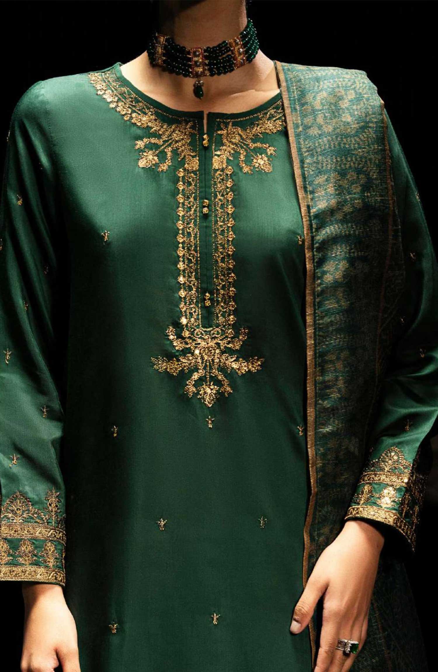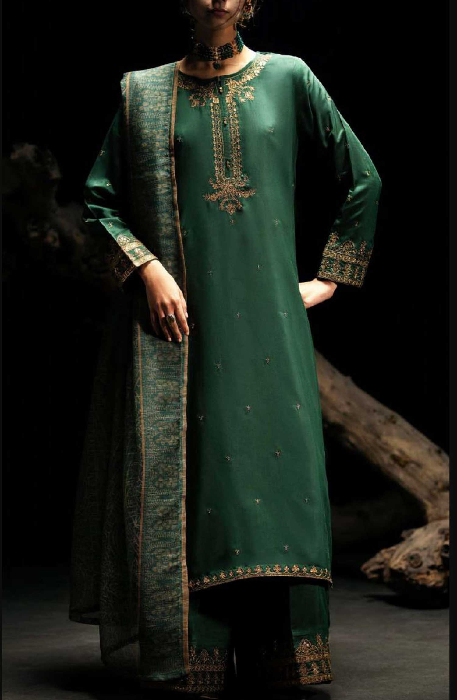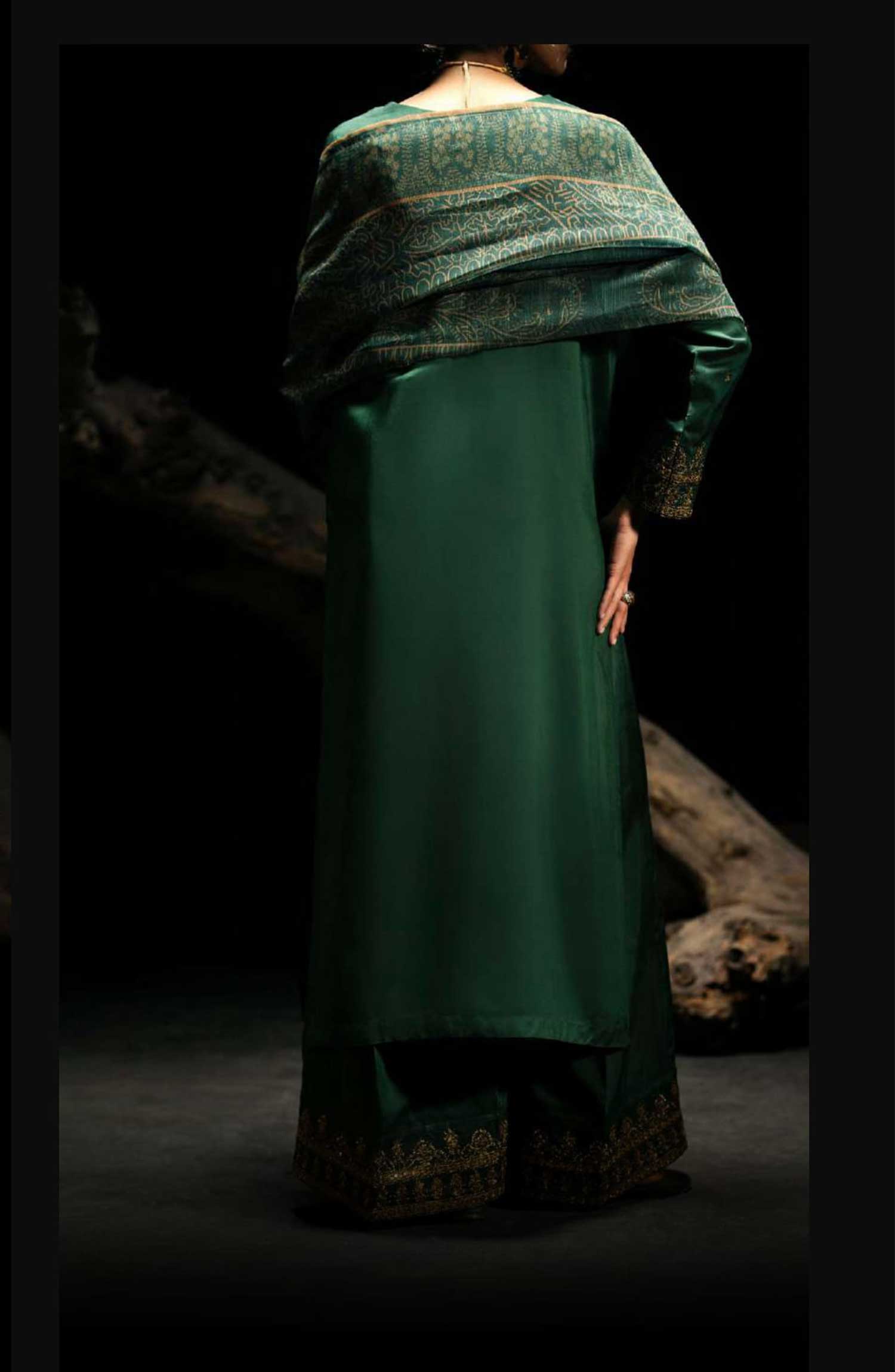 Home Boutique by Casual lite Embroidered Cotton Silk Stitched 3 Piece - Enchanting Green Hue - CL25B2 - Green - Festive Collection