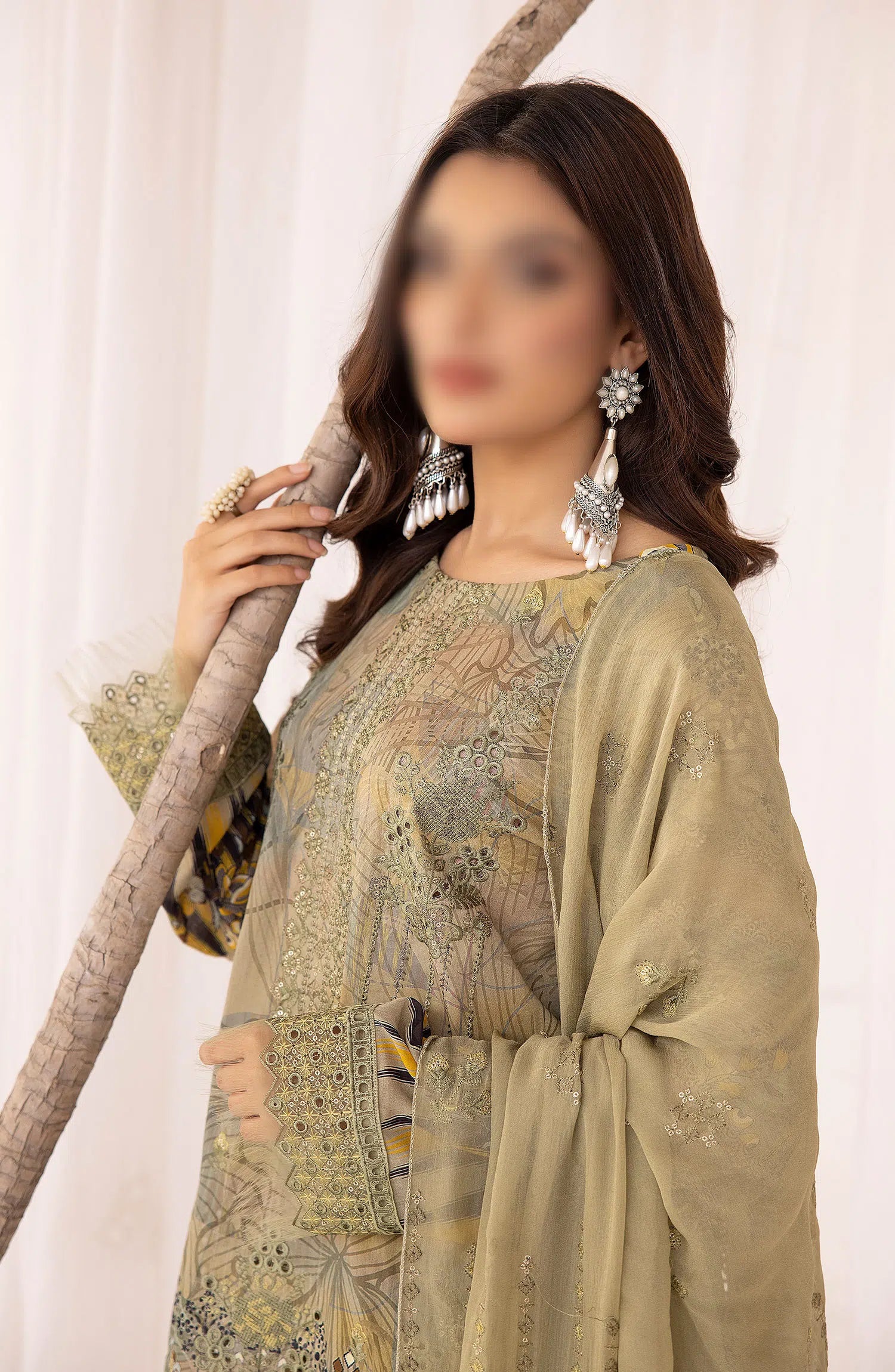 Bunai Digital Printed and Embroidered Swiss Voile Collection - Design 03