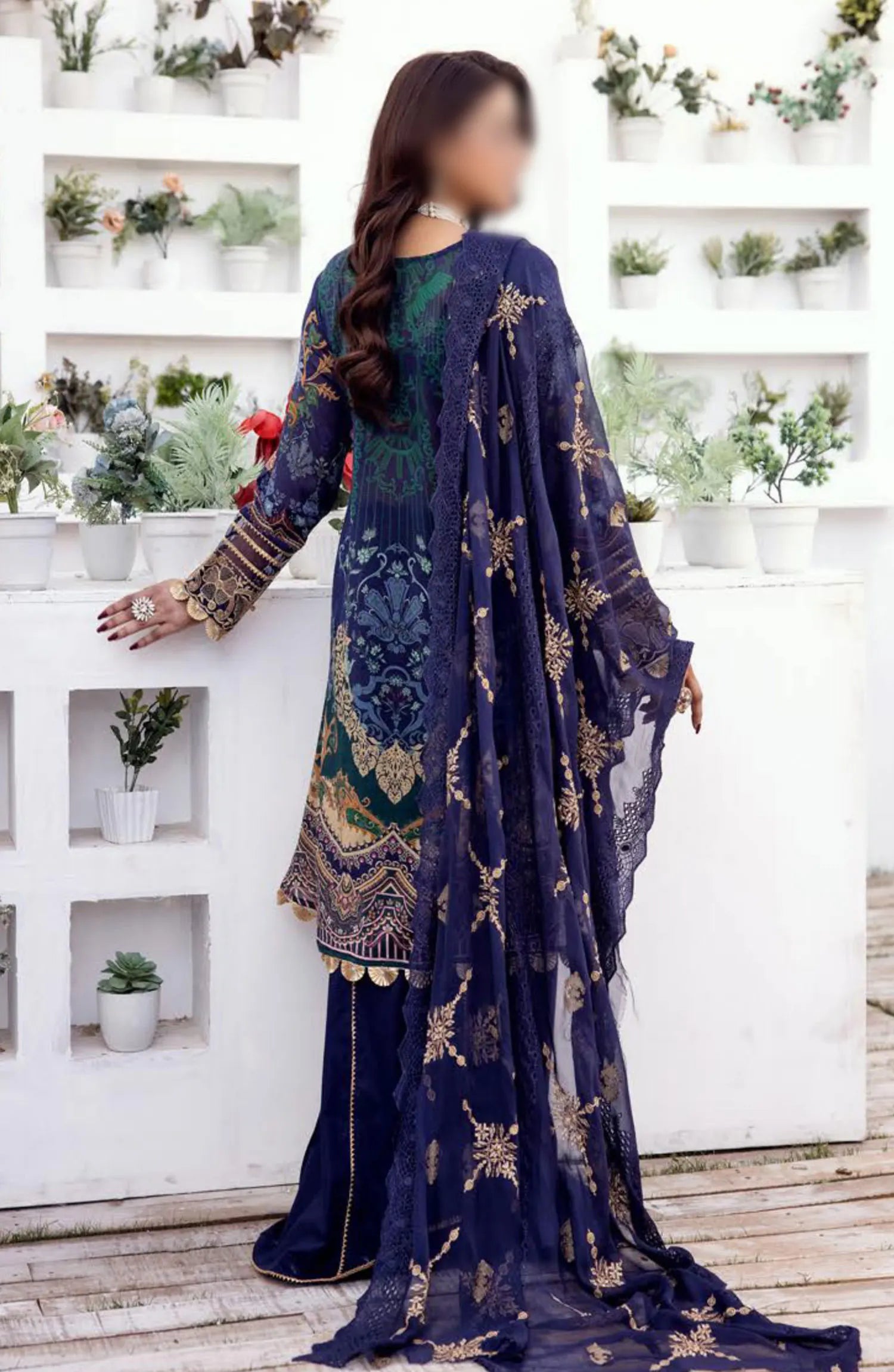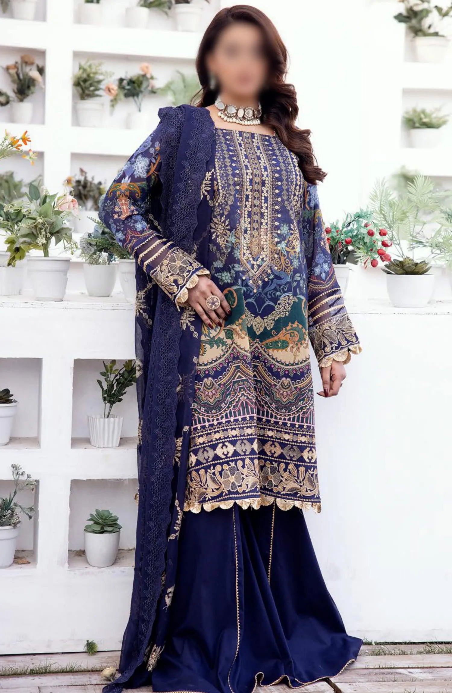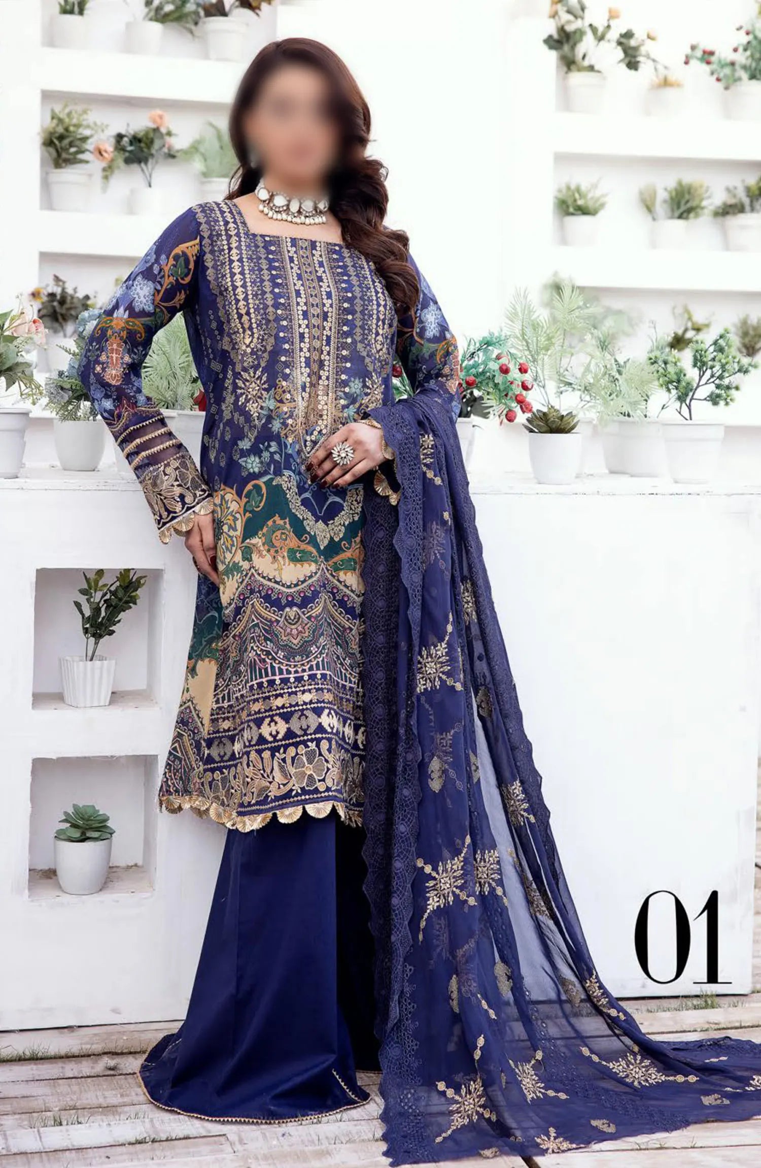 AJR Garden Whisper Embroidered Silk Unstitched 3 Piece Suit - AJR-GW-04 AURINA - AJR25GW - Sky Blue - Luxury Collection