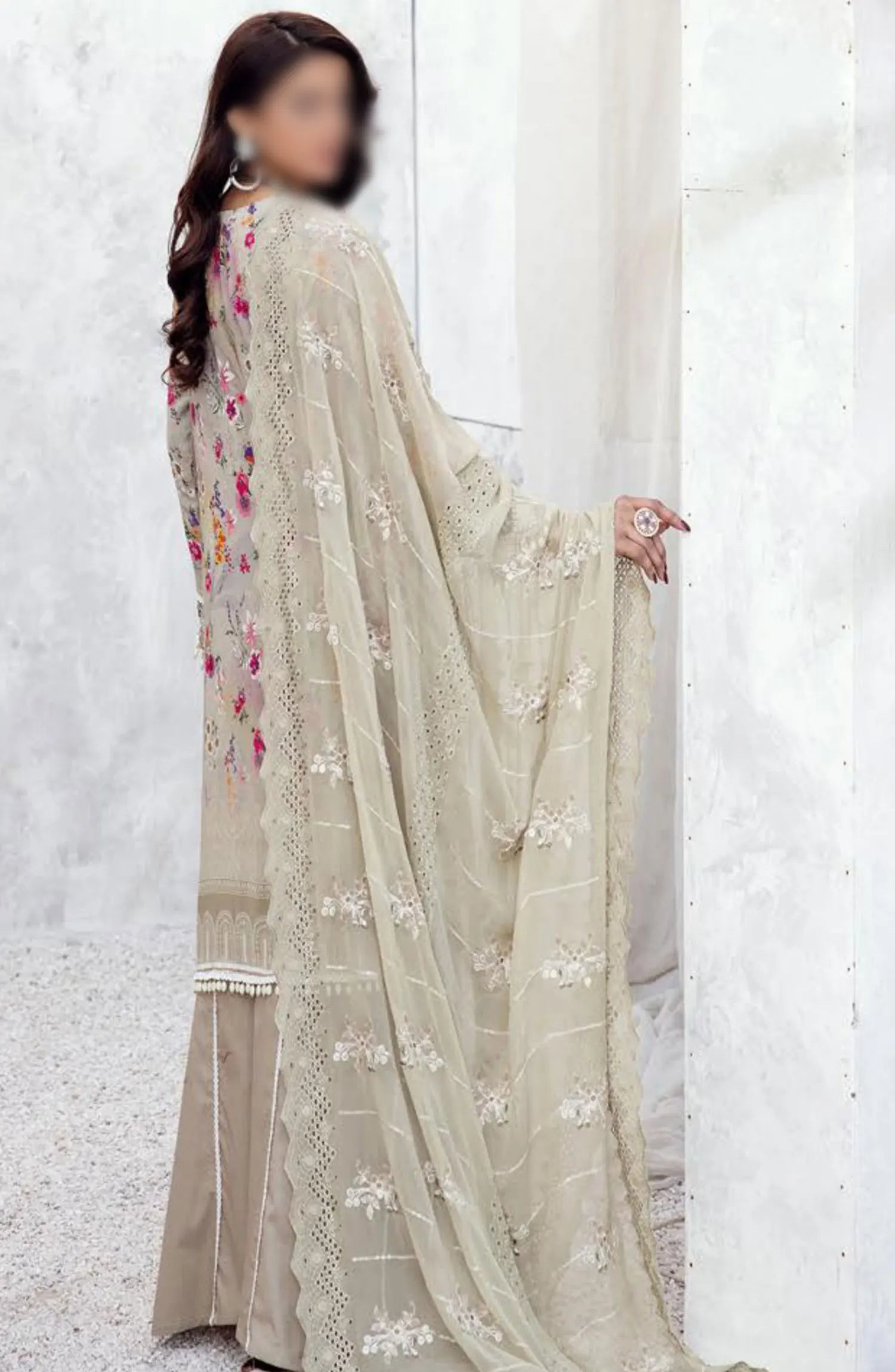 AJR Garden Whisper Embroidered Silk Unstitched 3 Piece Suit - AJR-GW-06 LUMIERE - AJR25GW - Beige - Luxury Collection