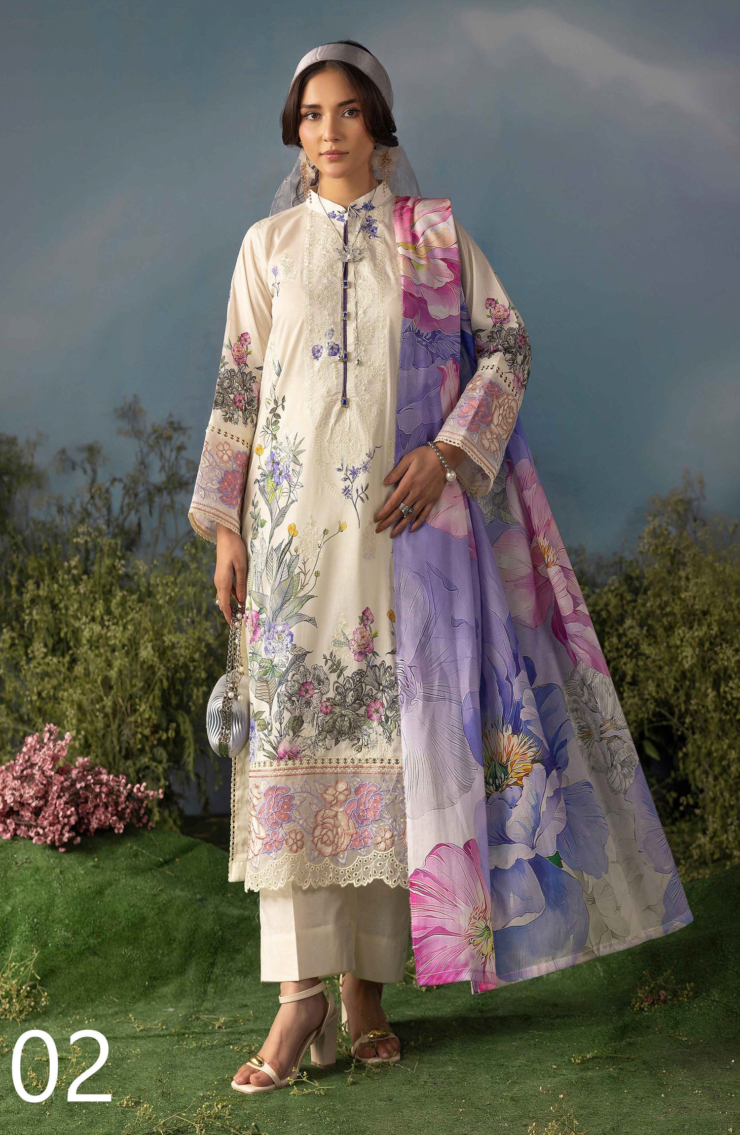 Luxury Embroidered Lawn Unstitched 3 Piece Suit