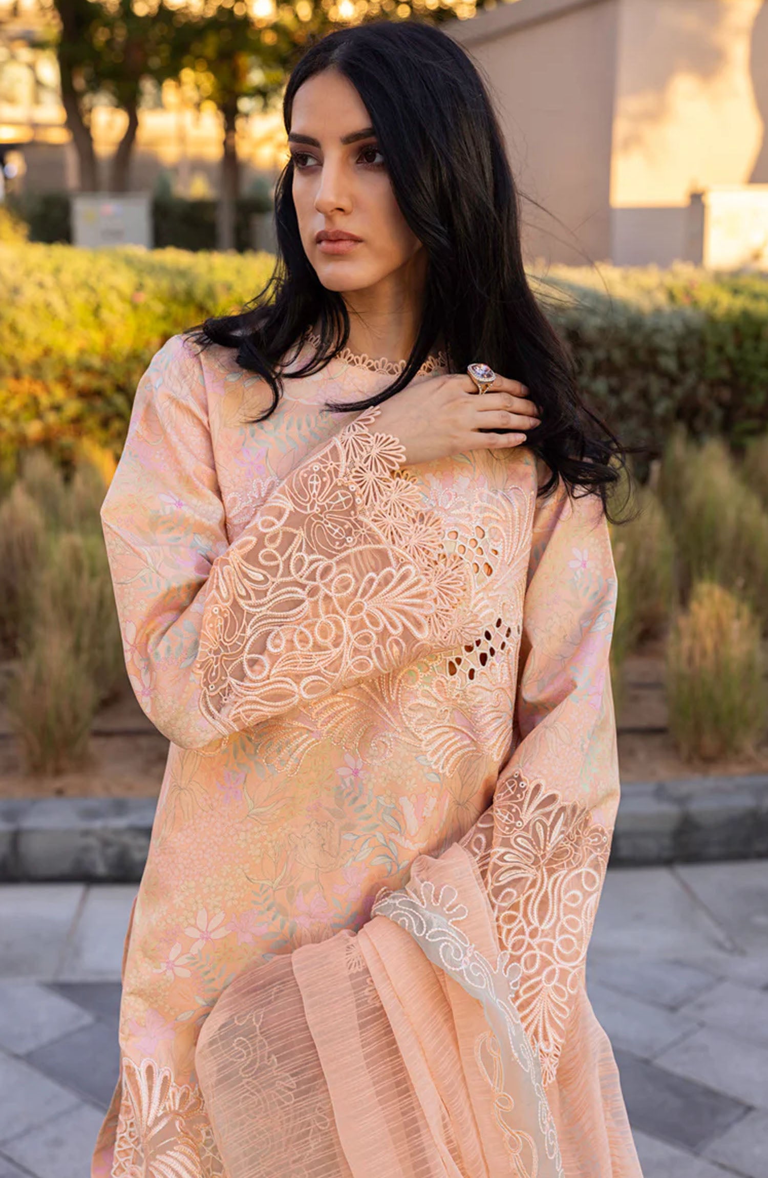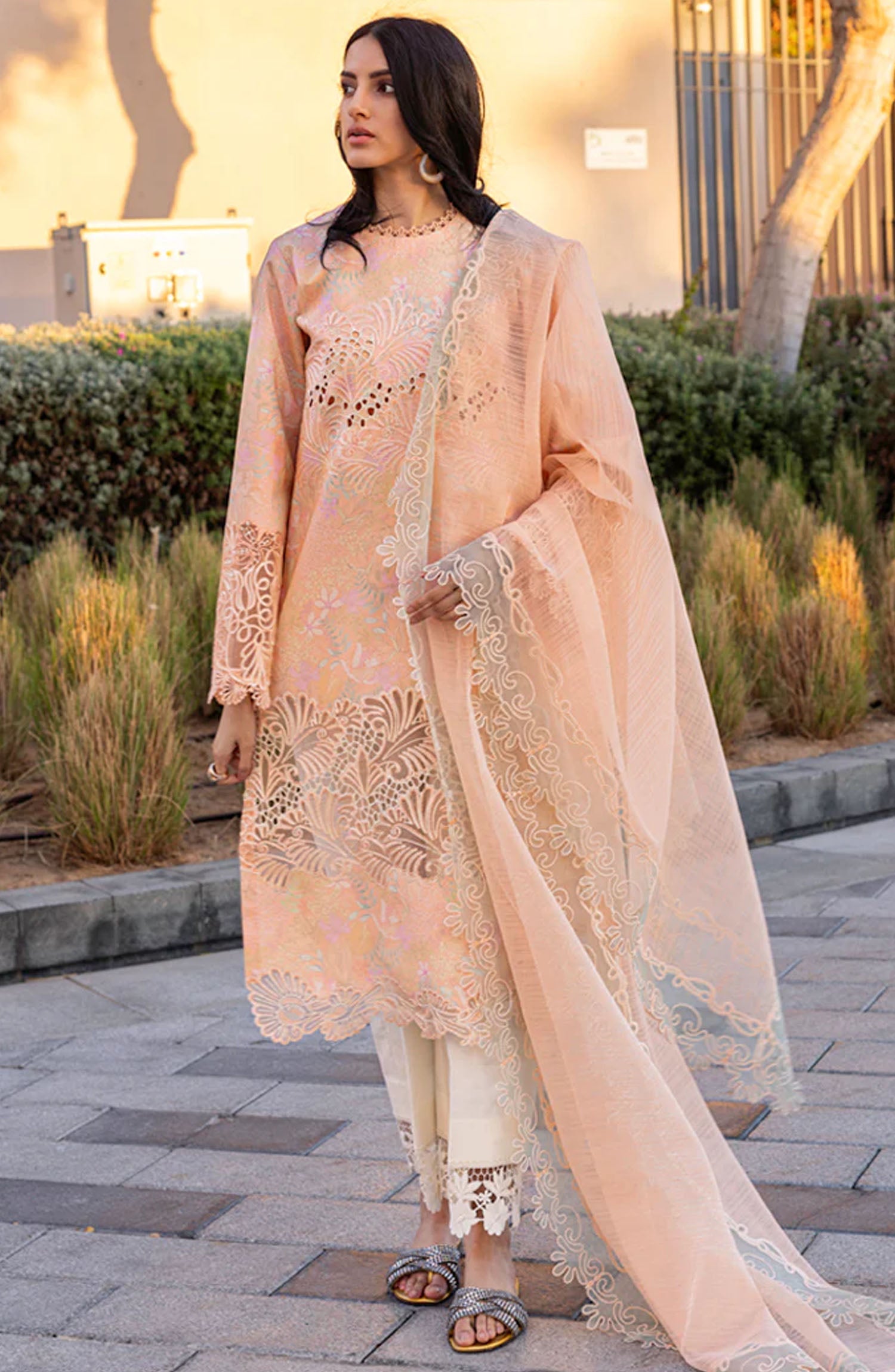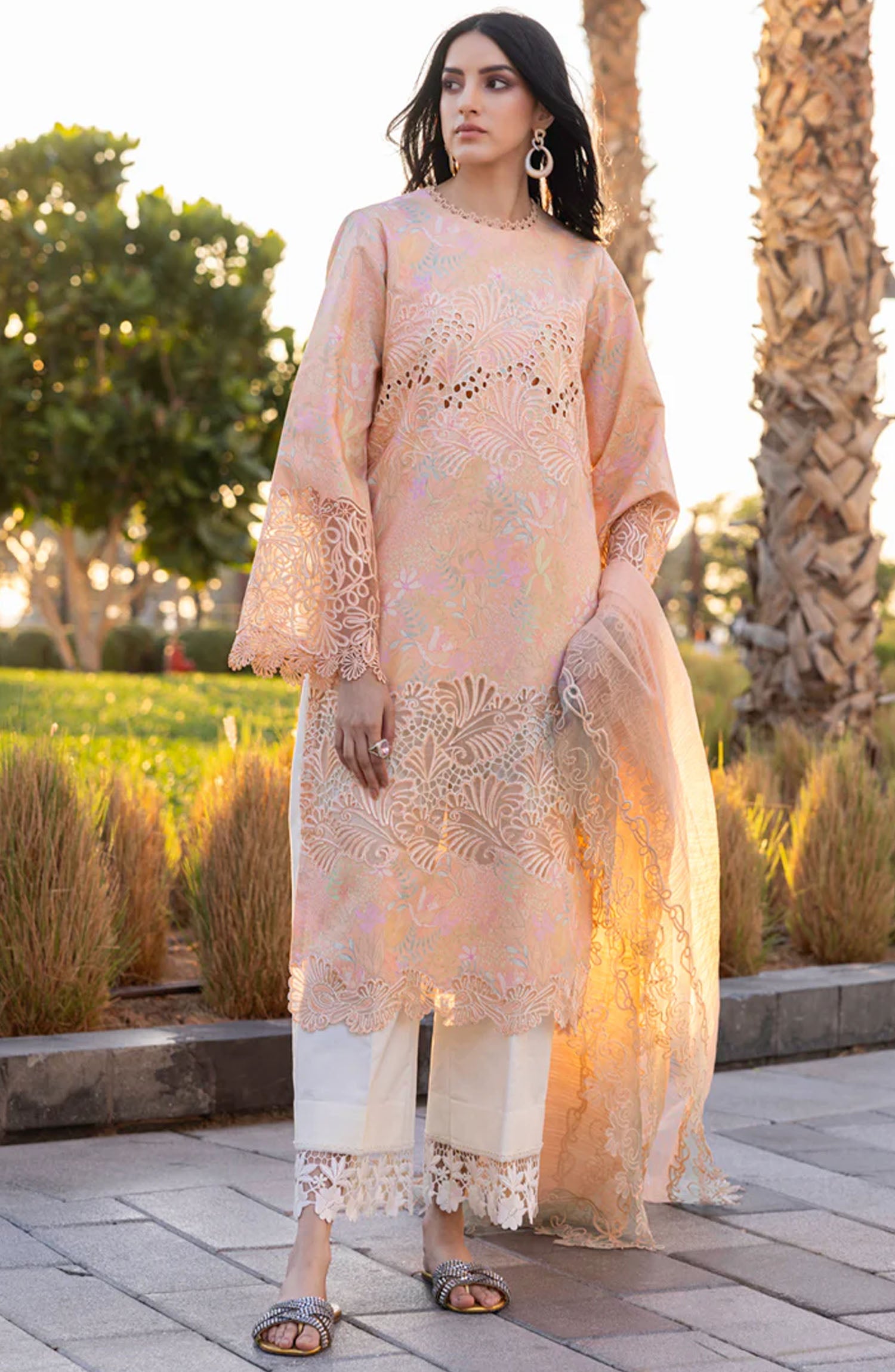 The standard style comes as a long-sleeved kameez with dupatta and trouser/shawlar.