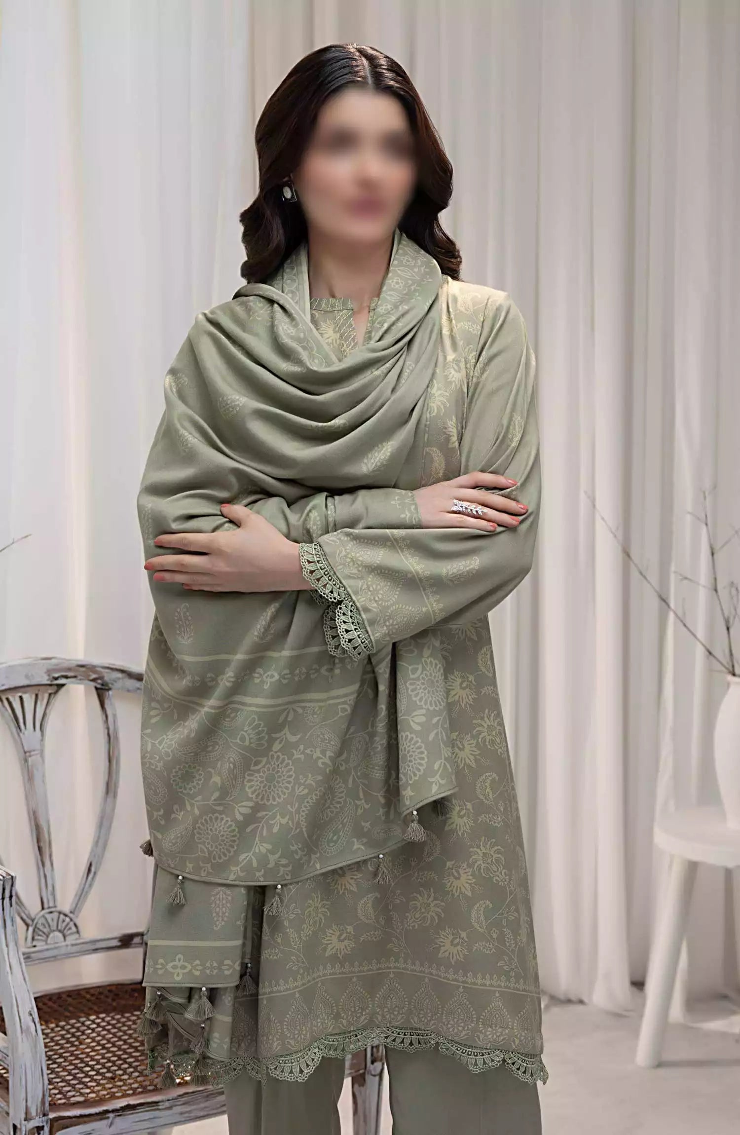 Cashmi Vool Unstitched Printed Collection By LSM has been styled in the image for photography and illustrative purposes.