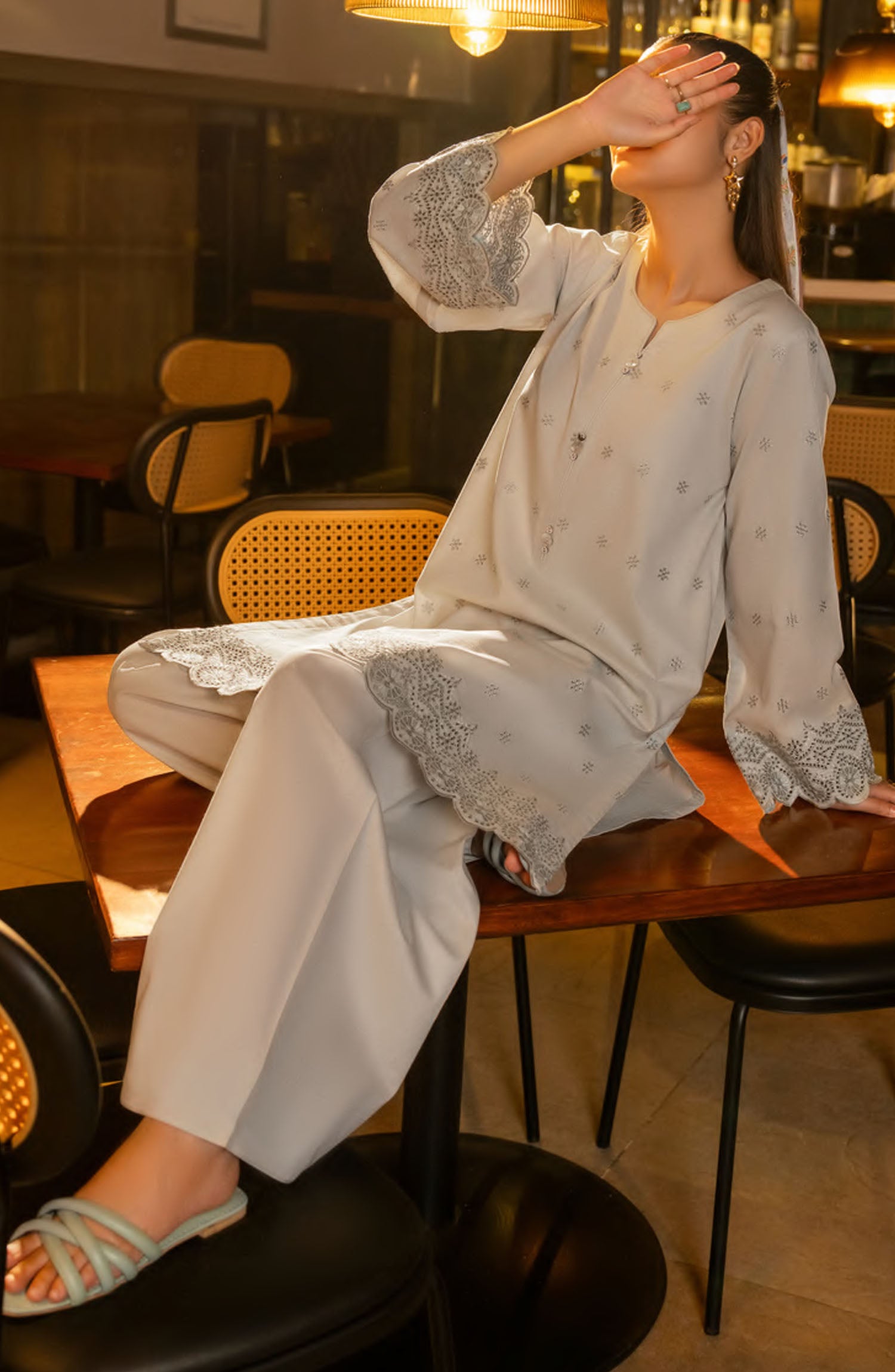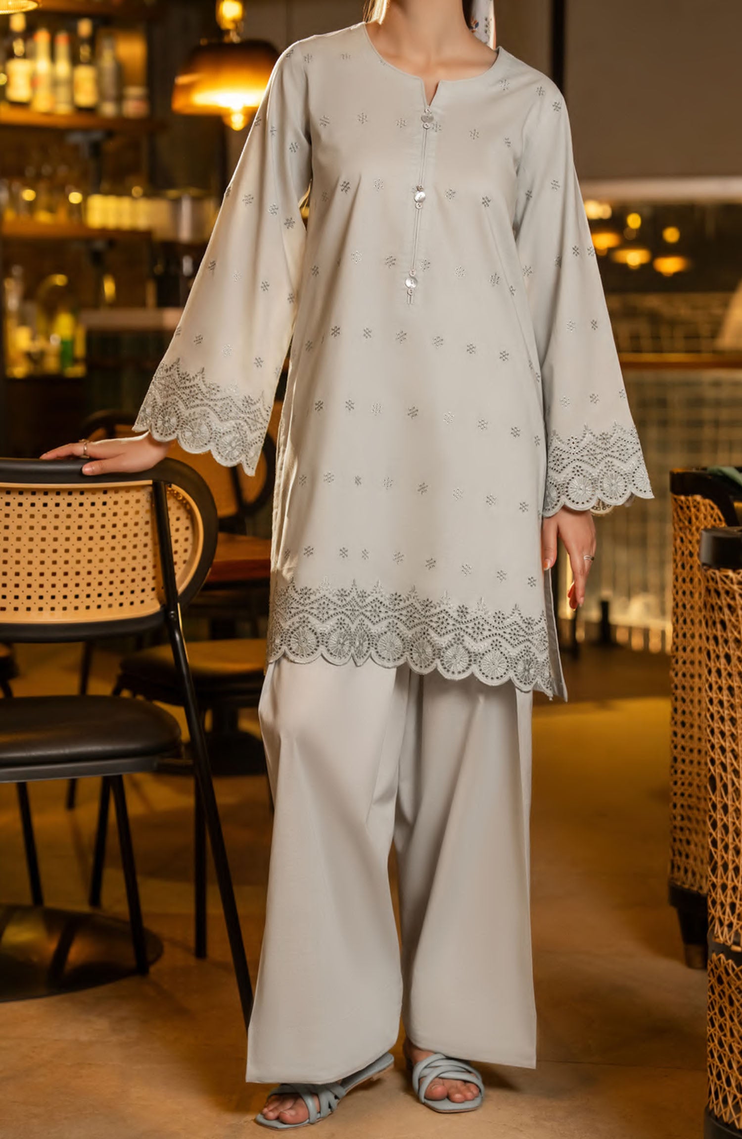 Home Casual Lite Embroidered Cotton Lawn Stitched 2 Piece Suit - Outfit-02 - CL25T70 - Grey - Summer Collection