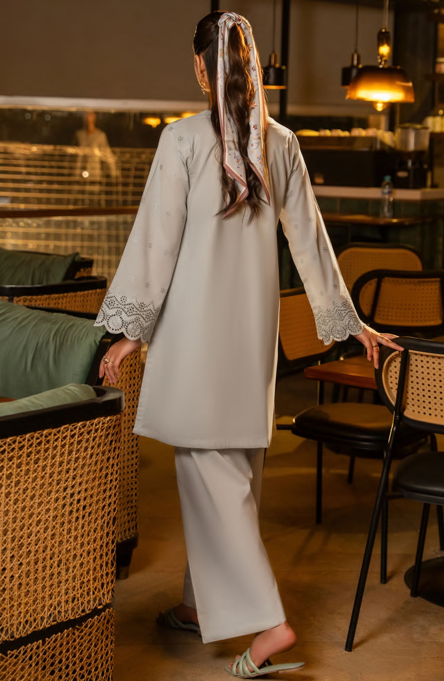 Casual Lite Embroidered Cotton Lawn Stitched 2 Piece Suit - Outfit-02 - CL25T70 - Grey - Summer Collection
