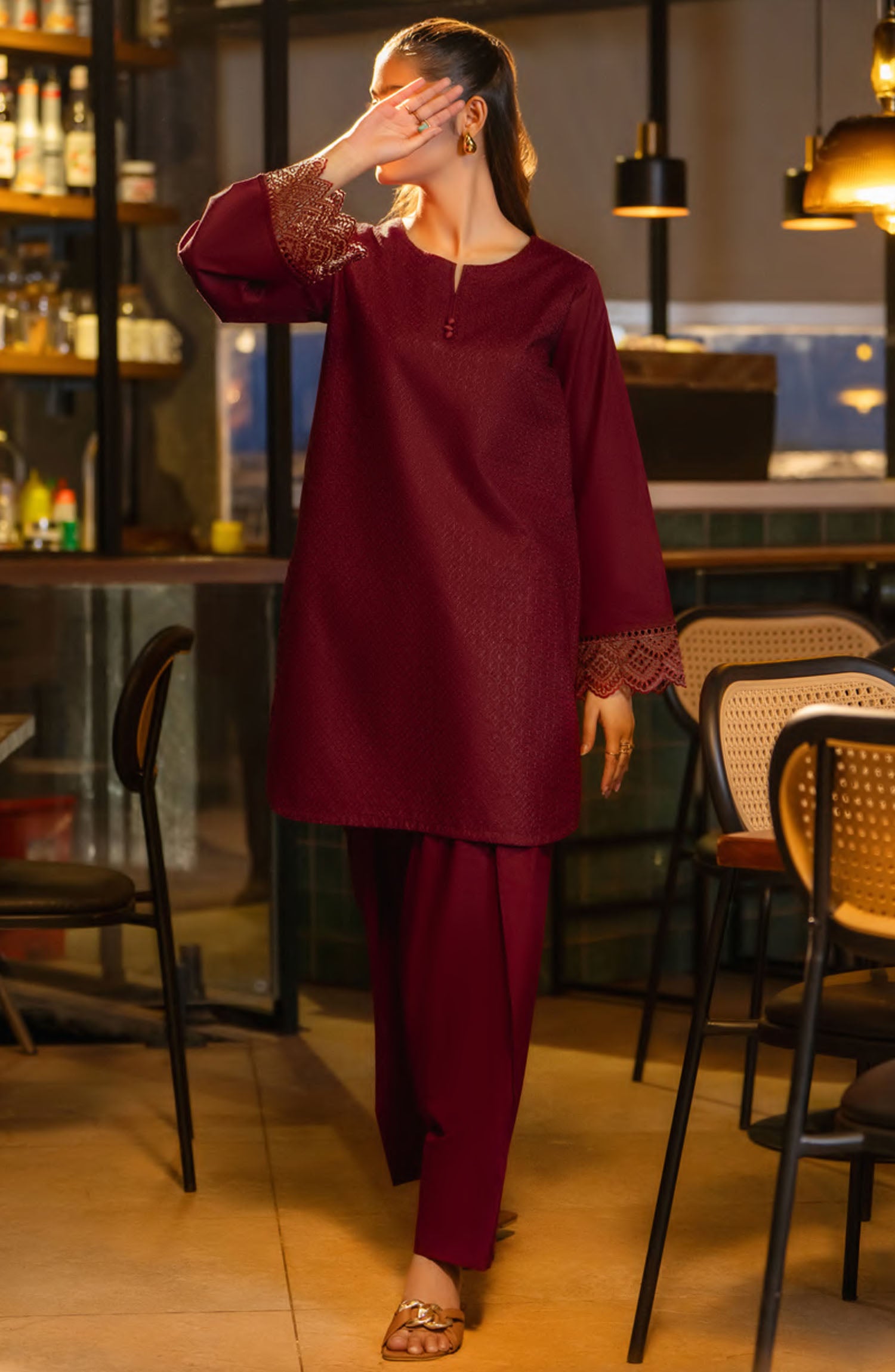 Casual Lite Embroidered Cotton Lawn Stitched 2 Piece Suit - Outfit-03 - CL25T70 - Maroon - Summer Collection