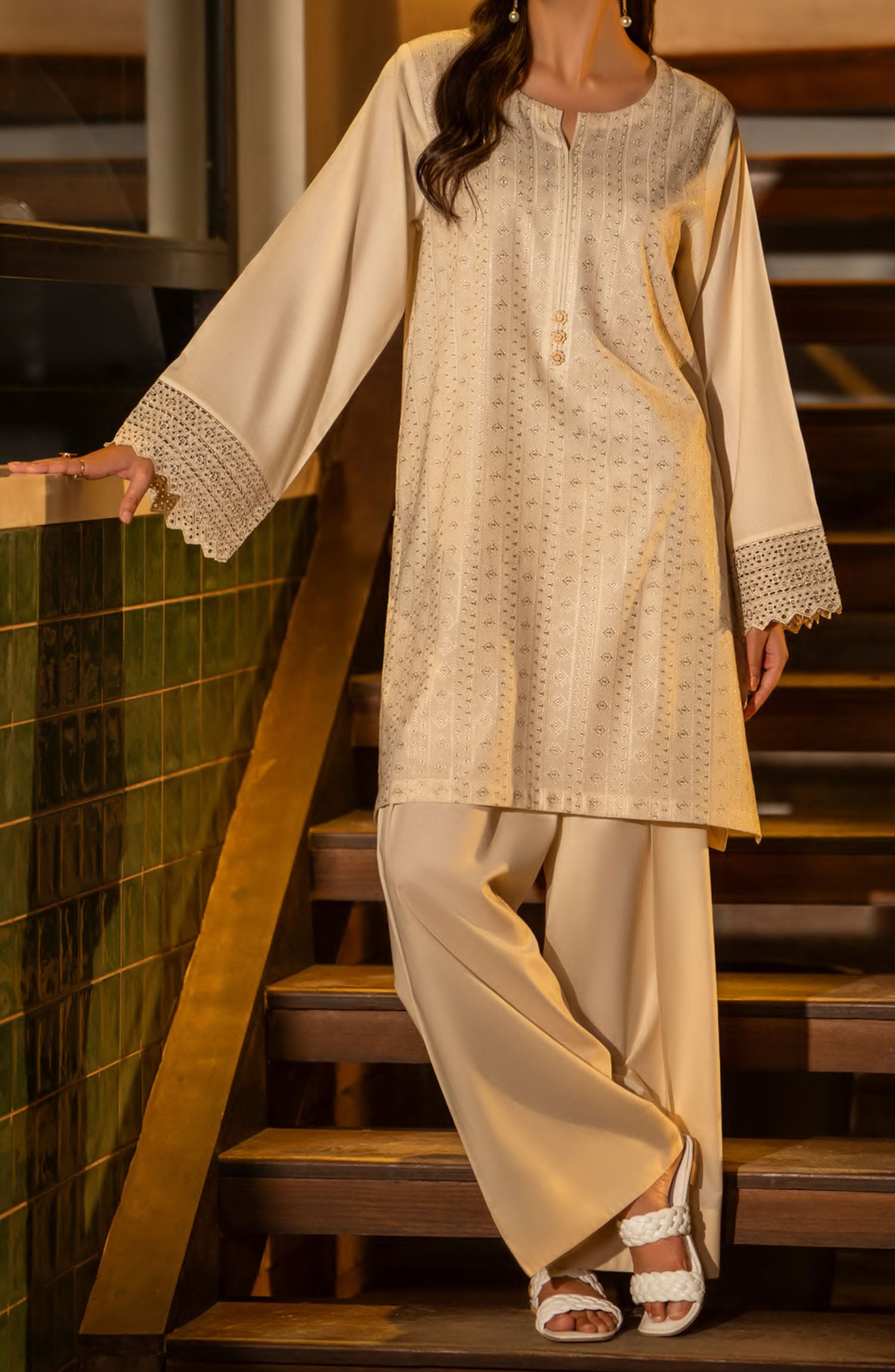 Home Casual Lite Embroidered Cotton Lawn Stitched 2 Piece Suit - Outfit-04 - CL25T70 - Beige - Summer Collection