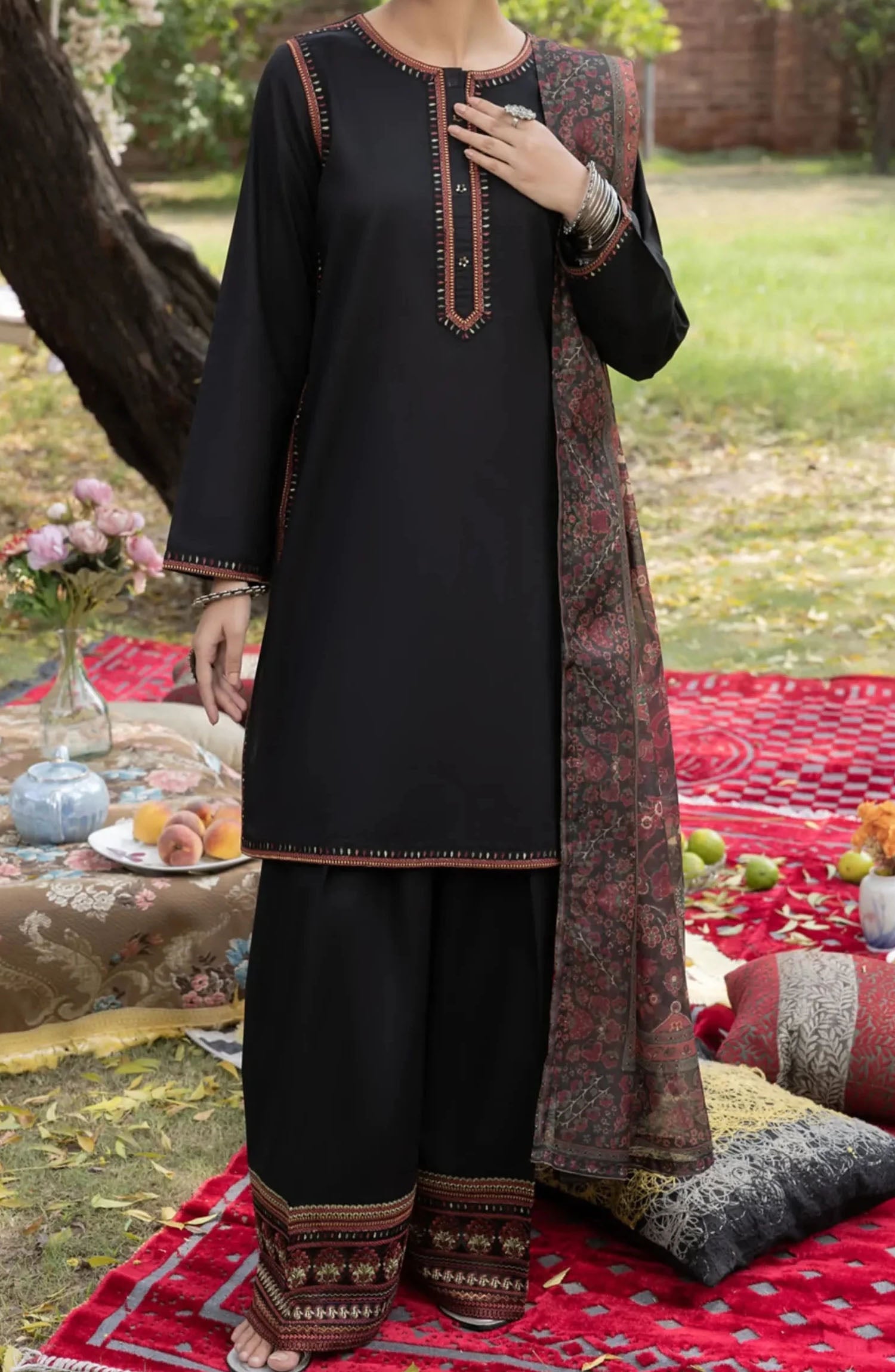 The standard style comes as a long-sleeved kameez with dupatta and trouser/shawlar.