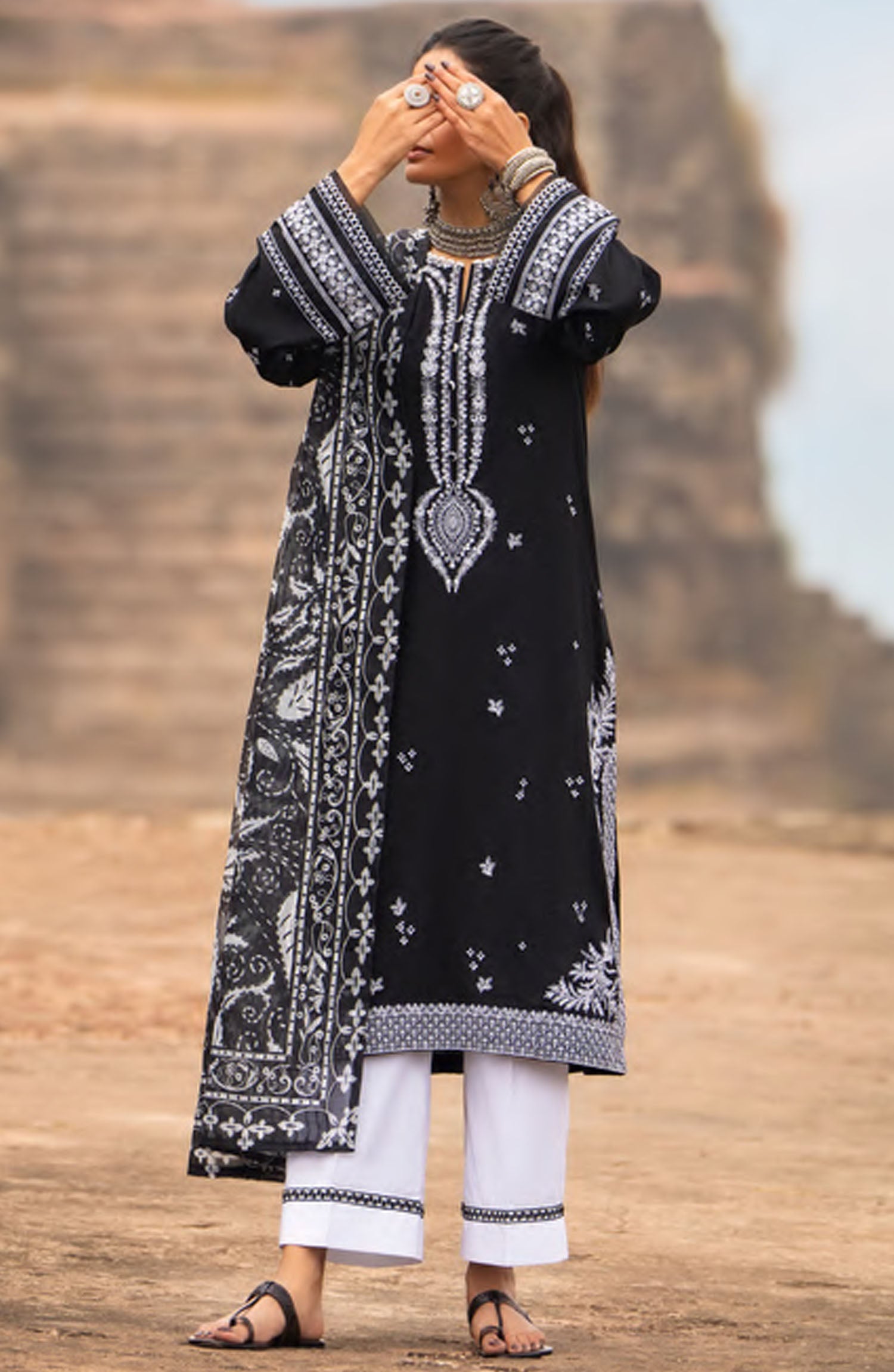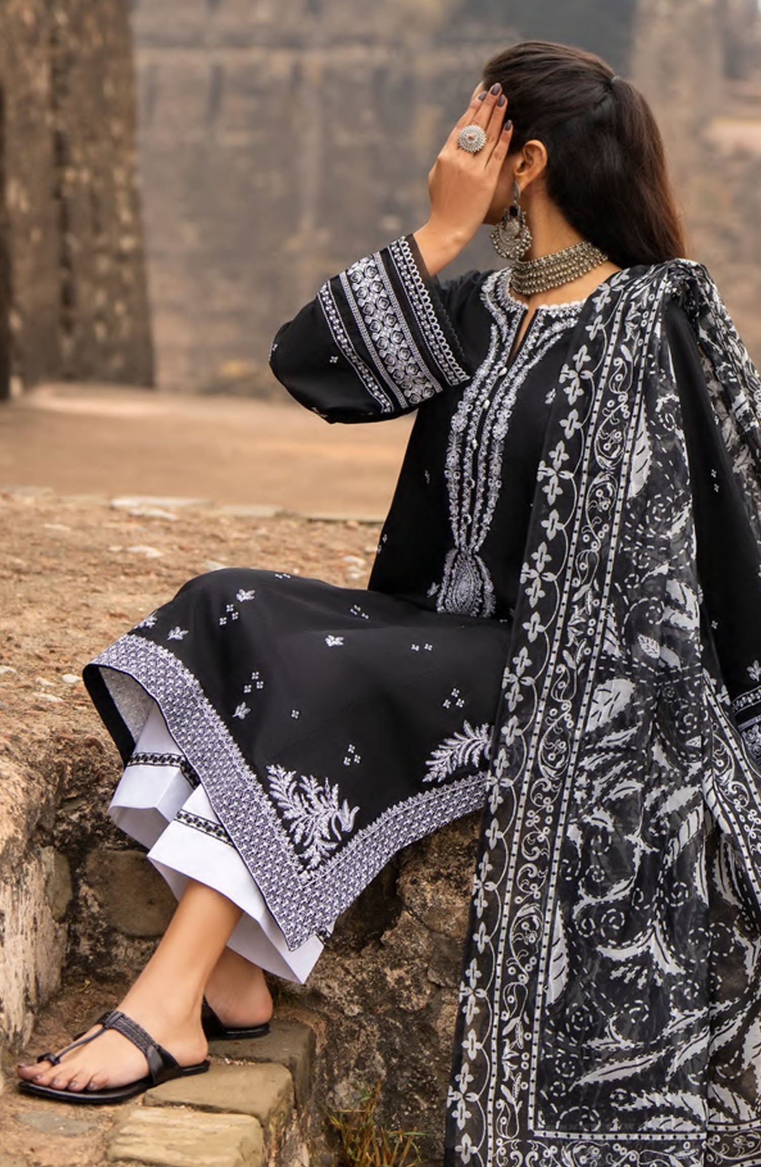 Casual Lite Embroidered Lawn Stitched 3 Piece Suit - D-06 - CL25ITS - Black - Summer Collection
