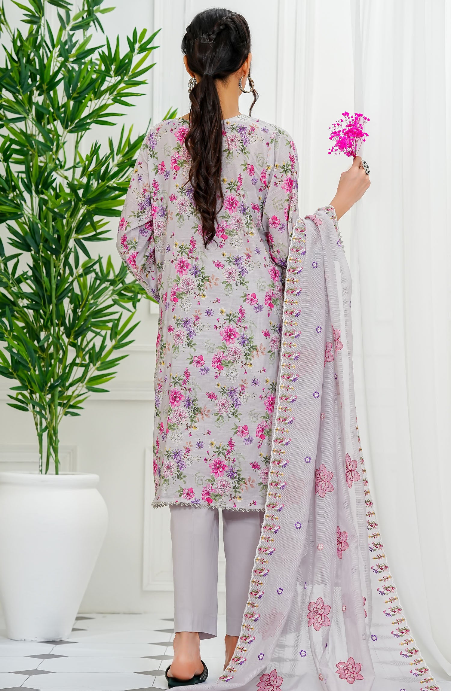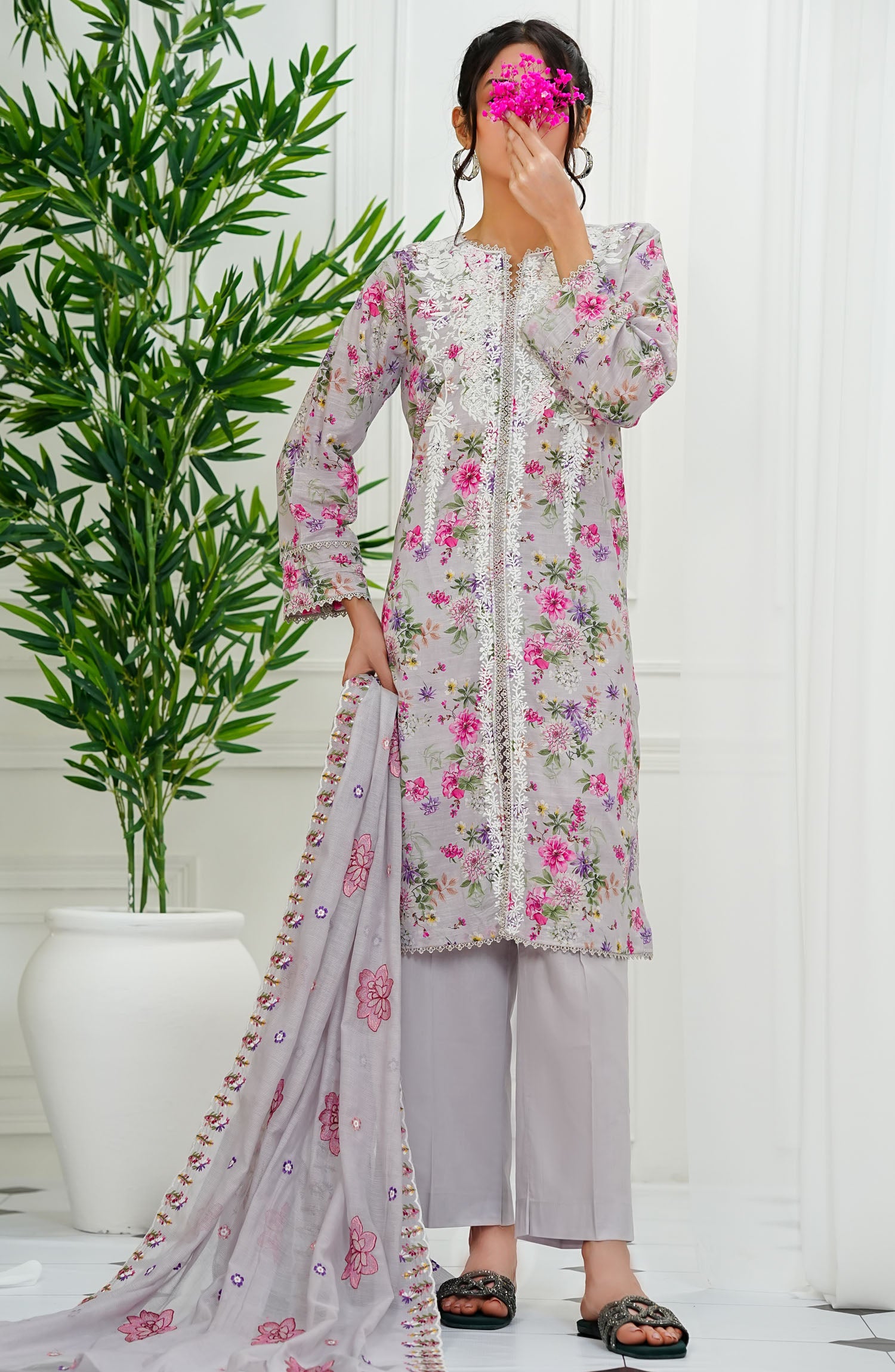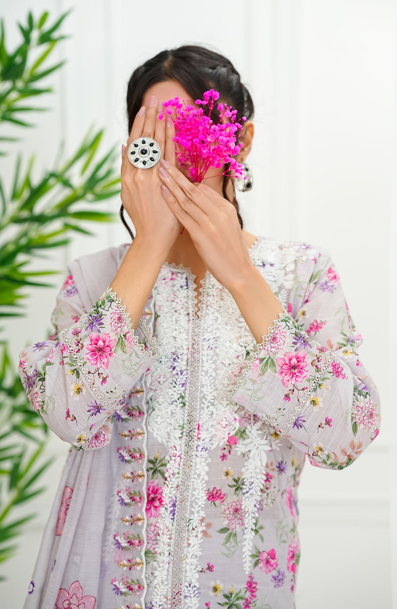 Home Chantelle by Amna Khadija Embroidered Lawn Stitched 3 Piece Suit - CPEEE-04 - AM25CPEEE - Grey - Summer Collection