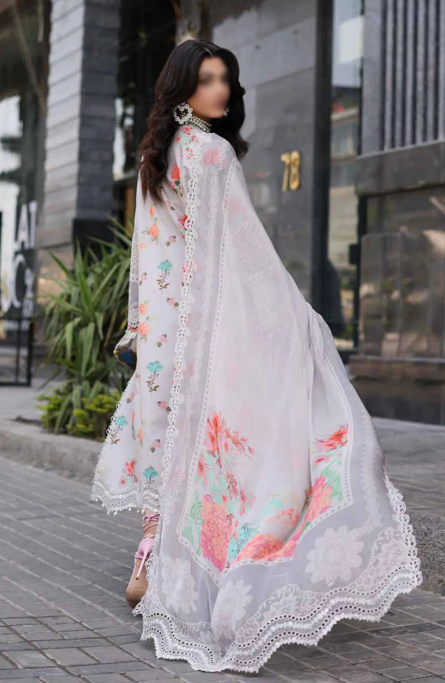 Unstitched Embroidered Lawn Suit with Embroidered Printed Chiffon Dupatta.