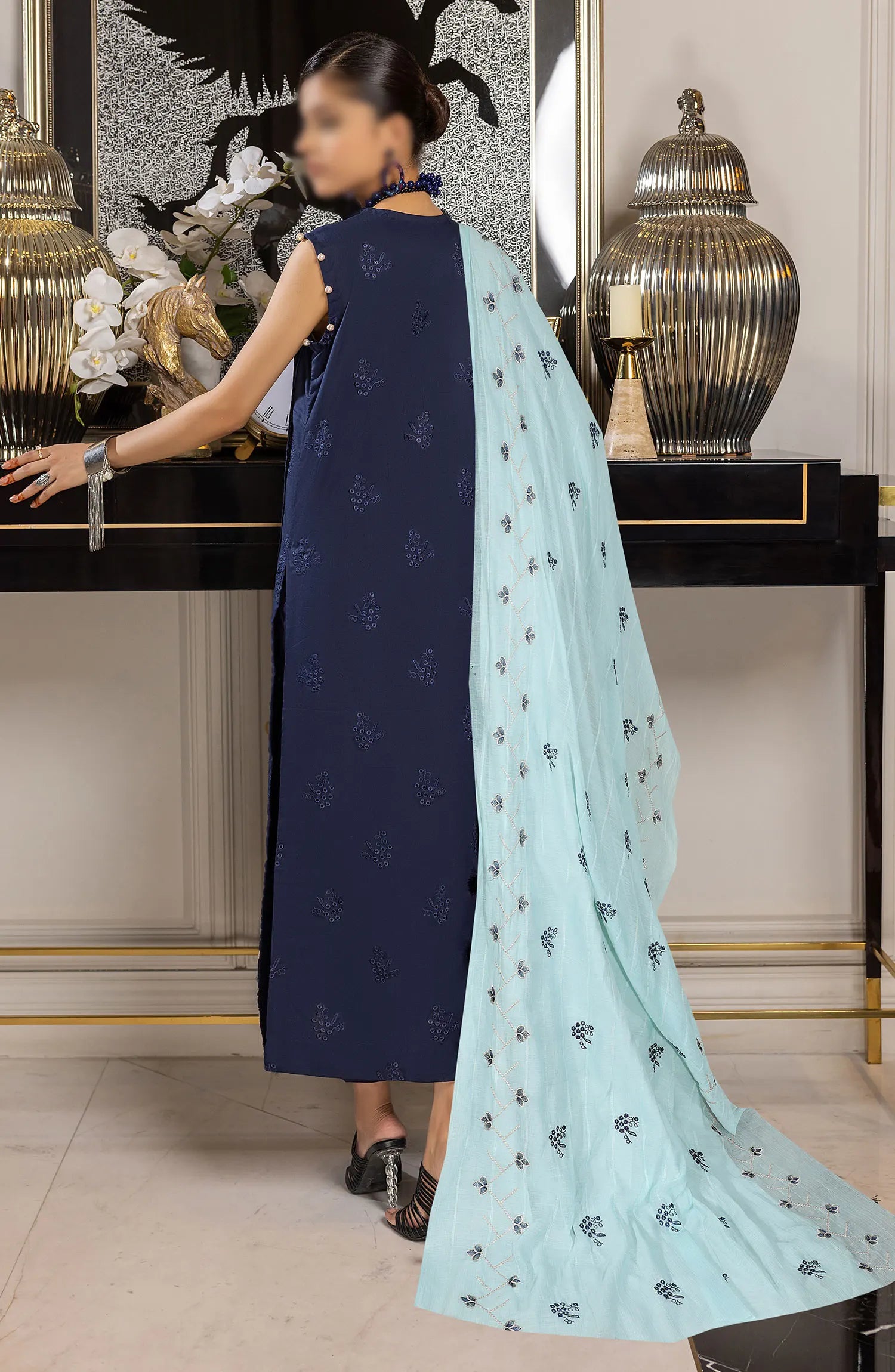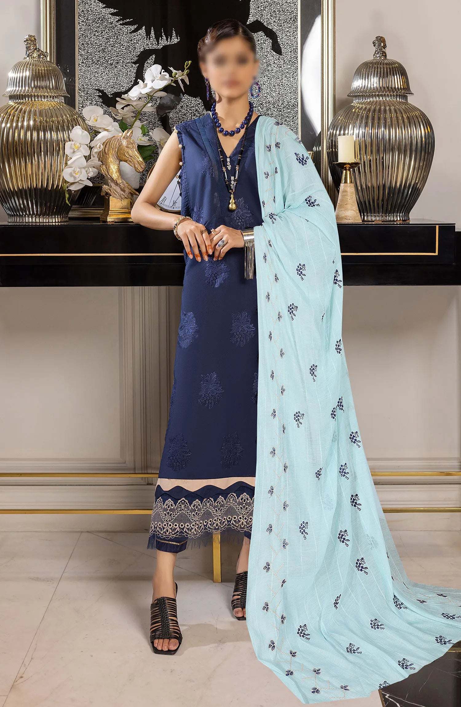 Amna Khadija Embroidered Crinkle Chiffon Unstitched 3 Piece Suit - D-01 - AM25LXC - Blue - Formals Collection