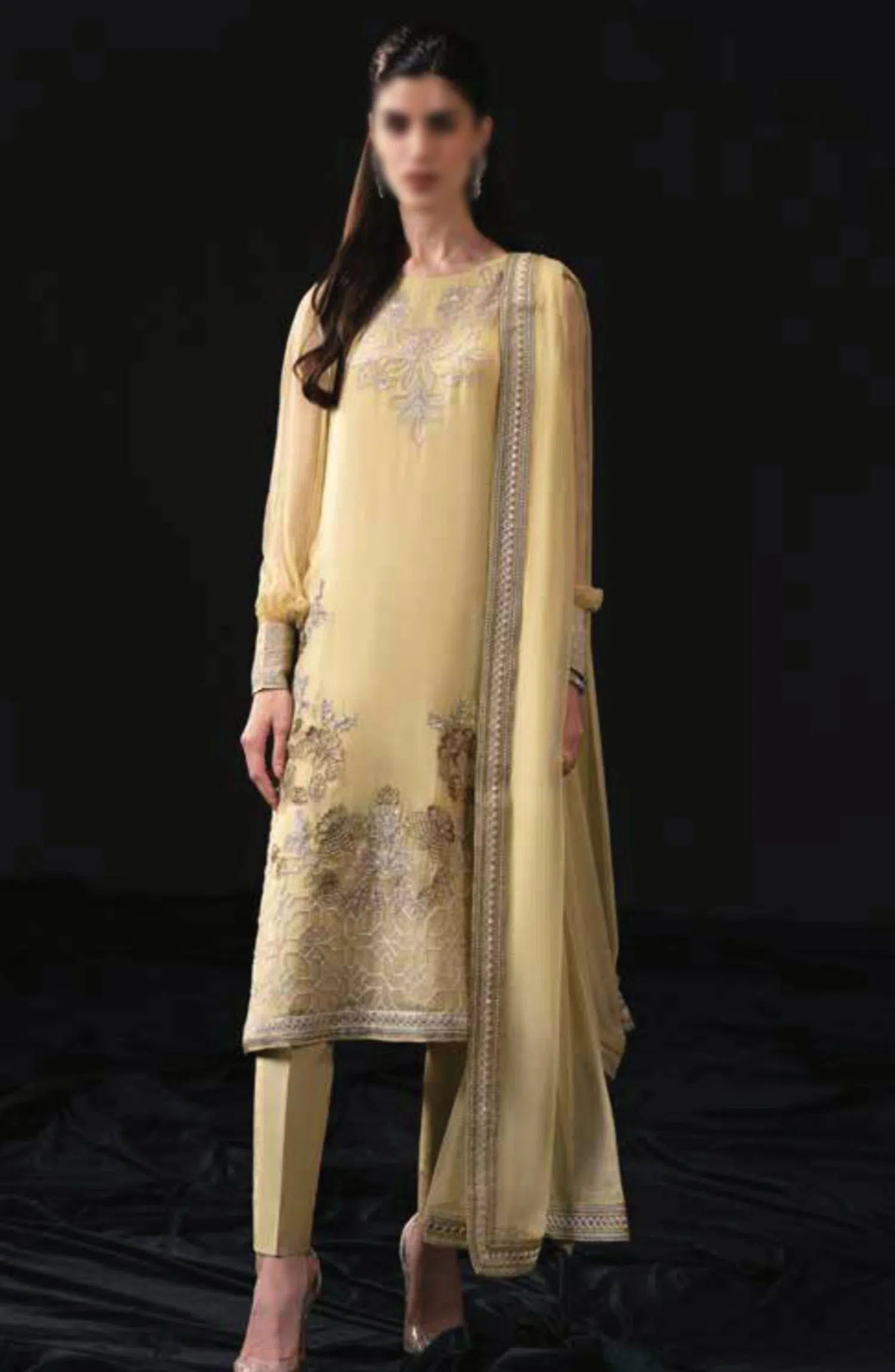 Embroidered Chiffon Fabric For Shirt And Dupatta With Embroidered Organza Border,